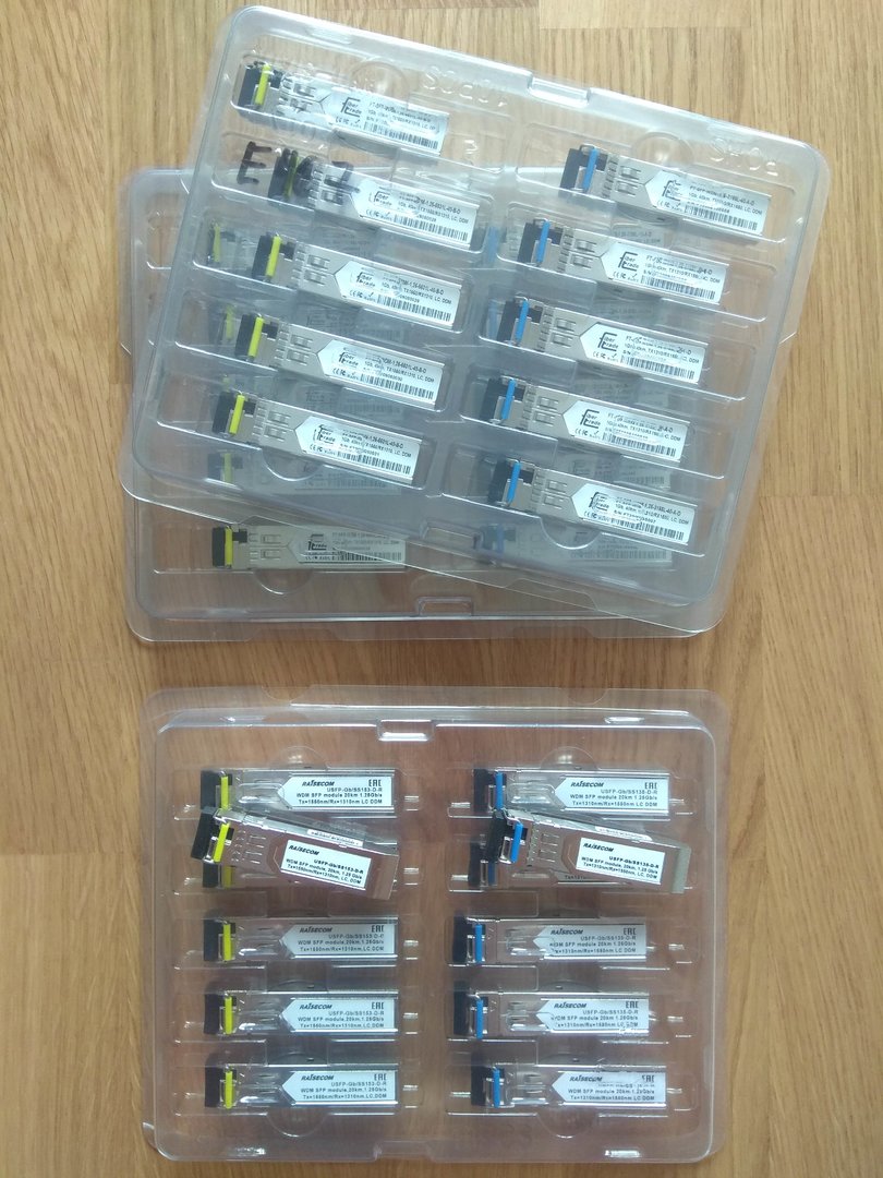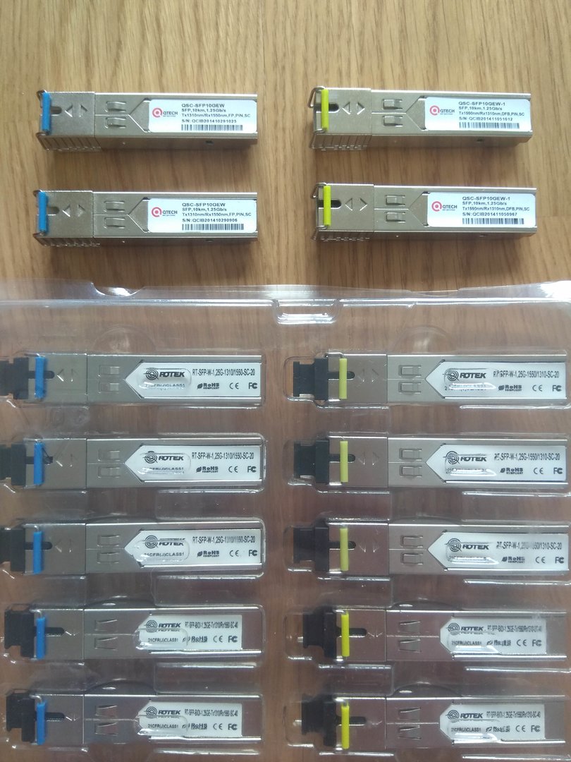 baslim80 Posted June 13, 2021 Posted June 13, 2021 Новые! 1. SFP SC (7 пар) - 300 руб/шт ROTEK RT-SFP-W-1.25-1310/1550-SC-20 - 5шт RT-SFP-W-1.25-1550/1310-SC-20 - 5шт QTECH QSC-SFP10GEW - 2шт QSC-SFP10GEW-1 - 2шт 2. SFP LC 40км (10 пар) - 250 руб/шт Fiber Trade FT-SFP-WDM-1.25-6631L-40-B-D - 10шт FT-SFP-WDM-1.25-3166L-40-B-D - 10шт 3. SFP LC 20км (6 пар) - 200 руб/шт Raisecom USFP-Gb/SS153-D-R - 6шт USFP-Gb/SS135-D-R - 6шт Модули в Ижевске. Доставка за ваш счет любым способом. Фото по запросу. Иван, 9512048511 Вставить ник Quote