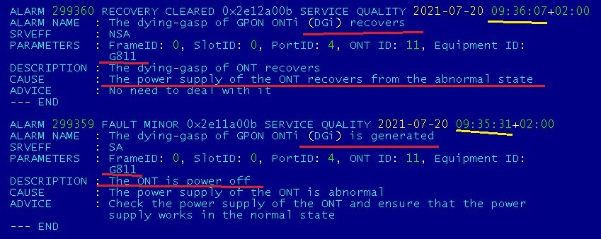 caren.emma Posted July 21, 2021 Posted July 21, 2021 Здравствуйте! есть MA5608T MA5600V800R015C00 к которому прикручены ОНУ как Хуавея 8310, 8310М С+, 8245, БДКом 1501, Пикотель X711, G811, Foxgate 2011 и конечный сервис выдается по DHCP При первоначальном добавлении ОНУ на ОЛТ все работает. Но иногда, когда у абонентов пропадает элекричество некоторые ОНУ (те что из списка выше) не могут пробросить интернет-сервис. При этом ОНУ в онлайне, уровни прямого, обратного каналов и прочее, состояние порта по СНМП считываются, иногда считывается МАС ВайФай роутера абонента, иногда не считывается. как временное решение - передергиваем конфиг этой ОНУ на ОЛТе и все едет дальше, но понимаем, что где-то зарыта проблемма передергиваем примерно так: undo service-port 570 MA5608T(config-if-gpon-0/1)#ont delete 14 19 MA5608T(config)#undo port vlan 2322 0/3 0 MA5608T(config)#undo vlan 2322 to 2322 MA5608T(config-if-gpon-0/1)#ont add 14 19 sn-auth 4244434D62xxxxxx omci ont-lineprofile-name simple ont-srvprofile-name bridge desc 1-69845 Number of ONTs that can be added: 1, success: 1 PortID :14, ONTID :19 MA5608T(config)#vlan 2322 smart MA5608T(config)#port vlan 2322 0/3 0 MA5608T(config)#service-port 570 vlan 2322 gpon 0/1/14 ont 19 gemport 1 multi-service user-vlan 100 rx-cttr 100 tx-cttr 100 MA5608T(config)#mac-address max-mac-count service-port 570 2 MA5608T(config-if-gpon-0/1)#ont port native-vlan 14 19 eth 1 vlan 100 priority 0 Уровни прямого на ОНУ (выбрал несколько проблемных) -17...-20 Подскажите, где может быть проблемма ? Спасибо. Вставить ник Quote