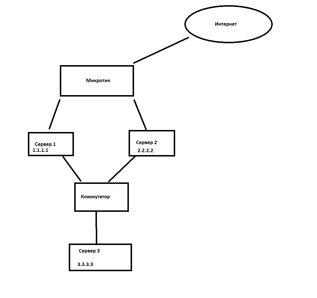 serj12331 Posted August 15, 2021 Posted August 15, 2021 Доброго времени! Стоит задача сделать балансировку входящего трафика через два сервера с помощью микротика. Нужно, чтобы трафик из интернета до сервера 3 прошёл +- пополам через сервер 1 и сервер 2. Обязательно нужно, что все пакеты принадлежащие одному входящему IP ходили только через 1 интерфейс. Либо на сервер 1, либо на сервер 2. Погуглив, нашёл рекомендации, что для таких случаев нужно нумеровать соединения и все его пакеты: каждый 1 пакет из 2 - нумеруем p1(к примеру), каждый 2 пакет из 2 нумеруем p2. Далее в соответствии с маркировкой раскидываем по интерфейсам. Пакеты пронумеровал, а вот раскидать по интерфейсам не получилось... Каким образом это сделать правильно? Либо может быть есть более лучший алгоритм для решения данной задачи? Если нужна какая-то доп. информация, напишите, скину. Буду очень благодарен за наводки. Вставить ник Quote