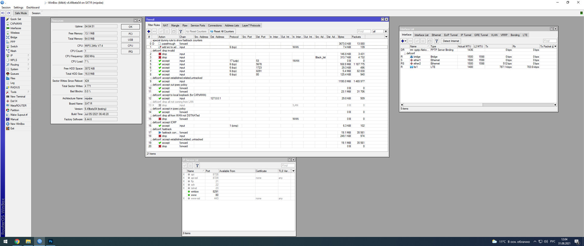 zn-game Posted August 31, 2021 Posted August 31, 2021 Доброго времени! Мои познания в настройках RouterOS, да и вообще сетевые, довольно слабы. Прошу помочь разобраться. Проблема: несколько раз в сутки микротик перезагружается по Watchdog'у (в логе отмечается). Как я понял по причине переполнения ОЗУ (но это не точно). Мои наблюдения через Winbox: после перезагрузки свободной памяти около 40Мбайт, далее плавно снижается. Через 3-4 часа около 10Мбайт, через еще какое-то время оборудование перезагружается по Watchdog'у и так без конца. Фаервол криво настроил, но проблема не уходит. Хотя ситуация значительно улучшилась. Вставить ник Quote