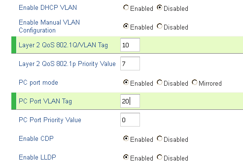 SUrov_IBM Posted March 31, 2022 Posted March 31, 2022 Если в VoIP VLAN ID 10 используется DHCP, не забудьте сделать "Enable DHCP VLAN" на телефоне, у Вас на картинке – Disable. Со стороны коммутатора, согласно схемы в вышестоящем сообщении, используется порт №3 (возможно ошибка в семе), в настройках используется порт №10. Если у Вас под рукой имеется компьютер с сетевой карточкой Intel, можно подключить его вместо телефона, чтобы принять VLAN в tagget на компьютер. Тем самым проверить, корректную отдачу VLAN с коммутатора, чтобы исключить неправильную настройку телефона. Под ОС WINDOWS см. - https://winitpro.ru/index.php/2020/03/17/nastrojka-vlan-interfejsov-v-windows/ Вставить ник Quote