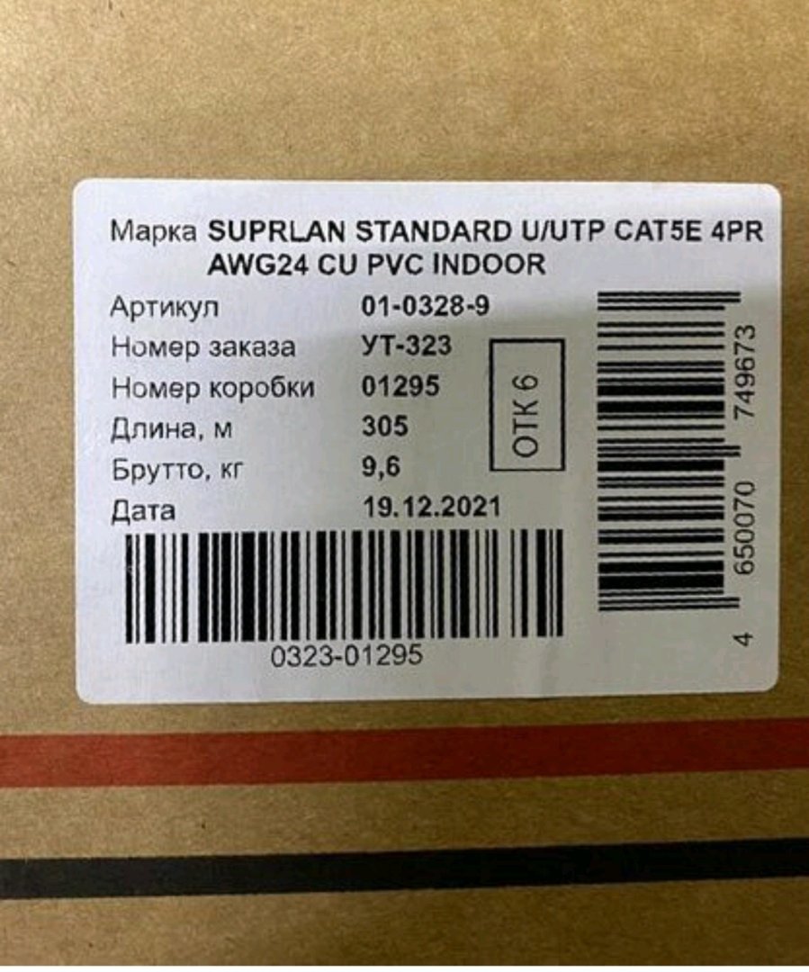 Dimsn89 Posted April 3, 2022 Posted April 3, 2022 (edited) Здравствуйте, есть около 30-40 коробок.Телефон для связи +79998210100 предварительно просьба отписаться в whatsapp, СМС и т. д. Кабель SUPRLAN standard UTP внутренний 8 жил (305 м). цена 5000/1 бухта SUPRLAN Standard UTP 5e 4x2xAWG24 Cu PVC In. 305м Характеристики Название категории по ETIM: Кабель информационный для передачи данных, компьютерный Бренд: SUPRLAN Производитель: Одескабель Категория: 5е Класс кабелей SUPRLAN: Standard Полоса пропускания, МГц: 100 Материал токопроводящей жилы: Медная одножильная (Cu Solid) Диаметр токопроводящей жилы: 0,48 Материал изоляции токопроводящей жилы: Полиэтилен высокой плотности (HDPE) Количество пар: 4 Тип проводников: Одножильный ( Solid) Экранирование: UTP (U/UTP) без экрана Материал экрана пары: Отсутствует Материал общего экрана: Отсутствует Допустимое растягивающее усилие, кН: 0,1 Внешний диаметр кабеля, мм: 4.6 Материал оболочки: ПВХ (PVC) Цвет оболочки: Серый (Gray) Способ прокладки: Внутри помещений (Indoor) IL, дБ/100м на частоте 1 МГц, ≤: 2.4 IL, дБ/100м на частоте 10 МГц, ≤: 6.8 IL, дБ/100м на частоте 31,25 МГц, ≤: 12.1 IL, дБ/100м на частоте 100 МГц, ≤: 22.7 NEXT, дБ/100м на частоте 1 МГц, ≥: 65.3 NEXT, дБ/100м на частоте 10 МГц, ≥: 50.3 NEXT, дБ/100м на частоте 31,25 МГц, ≥: 42.9 NEXT, дБ/100м на частоте 100 МГц, ≥: 35.3 ELFEXT, дБ/100м на частоте 1 МГц, ≥: 64 ELFEXT, дБ/100м на частоте 10 МГц, ≥: 44 ELFEXT, дБ/100м на частоте 31,25 МГц, ≥: 34.1 ELFEXT, дБ/100м на частоте 100 МГц, ≥: 24 Максимально расчетная дальность связи 100Base-T, м при 20 °С: 145 Максимально расчетная дальность связи 1G Base-T, м при 20 °С: 85 Соответствие стандартам: ISO/IEC11801, EN 50173, TIA/EIA568 и ГОСТ 54429-2011 Поддерживаемые приложения: 10BASE-T, 100BASE-TX, 100BASE-T4, 1000BASE-T, ATM-25, ATM-51, ATM-155 Вес, п.м, кг: 0.03 Допустимая температура монтажа, °С: от -10 до +60 Допустимая температура эксплуатации, °С: от -40 до +60 Радиус изгиба во время эксплуатации, диаметров кабеля, ?: 4 Радиус изгиба во время монтажа, диаметров кабеля, ?: 10 Гарантия: 3 года Упаковка: Коробка 305м ДОСТАВКА ДЛЯ ДЛЯ СЛЕДУЮЩИХ ГОРОДОВ: Солнечногорск Зеленоград Сходня Химки Москва Тверь Конаково Edited April 29, 2022 by Dimsn89 Вставить ник Quote