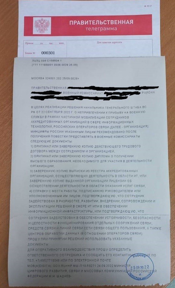 atihomirov Posted September 24, 2022 Здравствуйте. В связи с мобилизацией, прошу помочь дать разъяснения о решении Минобороны о непривличении на военную службу в рамках частичной мобилизации сотрудников высокотехнолигных отраслей. Конкретно текст: - в организациях, являющихся российскими операторами связи и задействованных в обеспечении устойчивости, безопасности и целостности функционирования отдельных сооружений связи, включая центры обработки данных, а также средств связи и линий связи сети связи общего пользования РФ; Я являюсь операторов фиксированной связи, также есть договор на строительство фиксированный сетей ПАО МТС и на аварийно восстановительные работы магистральный оптических линий связи компании ПАО "МТС", в данном ВОК также проходят волокна Россетей для связи между ПС. Подходят ли мои сотрудники под данные критерии? Share this post Link to post Share on other sites More sharing options...