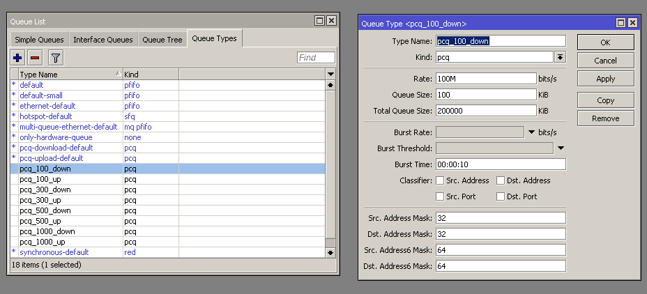 RN3DCX Posted September 28, 2022 Создал тарифные планы. 100 / 300 / 500 / 1000. Queue Size - размер под-очереди в килобайтах. Все данные в этой очереди при достижении лимитов задерживаются, все что в нее не влезло — уничтожается. Total Queue Size - суммарный размер всех под-очередей в килобайтах. Queue Size по дефолту 50. Пробовал ставить 100, 500 - разницы не увидел. Total Queue Size - вот тут ВОПРОС тем, кто познал тёмную материю микротика, какое значение должно либо рекомендуется ставить? Ведь это же группа и количество участников в этой группе постоянно увеличивается... Share this post Link to post Share on other sites More sharing options...