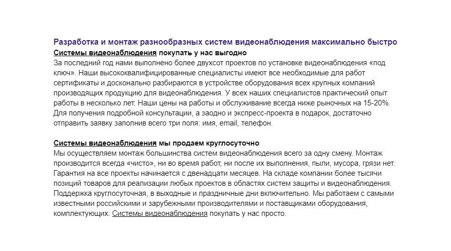 aviktoru Posted October 29, 2022 Posted October 29, 2022 20 сео текстов. Видеонаблюдение. Магазин видеонаблюдения. Товары. Для сайта, социальных сетей, торговых интернет-площадок, в общем любых существующих видов веб-ресурсов. Консультации, доработка под ваши конкретные задачи – бесплатны. 20 seo-текстов. 1. Комплекты видеонаблюдения. 2. Видеокамеры. 3. Видеорегистраторы. 4. Видеодомофоны. 5. Домофоны. 6. Сигнализации. 7. Видеоняни. 8. Панели вызова. 9. Системы доступа. 10. Фотоловушки. 11. Автоматика для ворот шлагбаумов. 12. Системы видеоаналитики. 13. Блоки питания для видеонаблюдения. 14. Коммуникаторы видеонаблюдения. 15. Платы видеозахвата. 16. Защита от грозы для видеонаблюдения. 17. Аксессуары для видеонаблюдения. 18. Материалы для видеонаблюдения монтажные. 19. Стоимость видеонаблюдения. 20. Видеонаблюдение стоит. Ключи основные в сео-текстах: названия сео-текста и название + купить. Варианты ключей дополнительных: название + купить + недорого + в Городе. Общее количество знаков без пробелов: 23319 Один сео-текст разбит на 2 части в 500-700 знаков с названиями: 1000-1200 знаков без пробелов. Уникальность по eTXT без учета фокусного ключа: 99%. https://avikto.ru/seo-teksty-gotovye-i-na-zakaz/ Вставить ник Quote