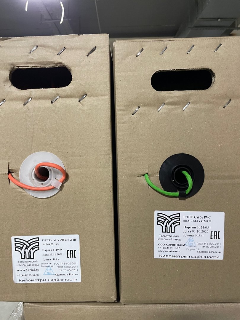 Gosha64 Posted November 5, 2022 Posted November 5, 2022 Кабель витая пара: UTP внешний - 5100р/бухта FTP внешний - 5700р/бухта UTP внешний с тросом - 6100р/ бухта FTP внешний с тросом 6700р/ бухта UTP нг(А)-LSLTx (зелёный) - 6200р/бухта UTP ZH нг(А)-HF (оранжевый ) - 6200р/бухта Жила 0,52. Есть все сертификаты. Возможен безнал. Отправка любой ТК из Саратова . Вставить ник Quote