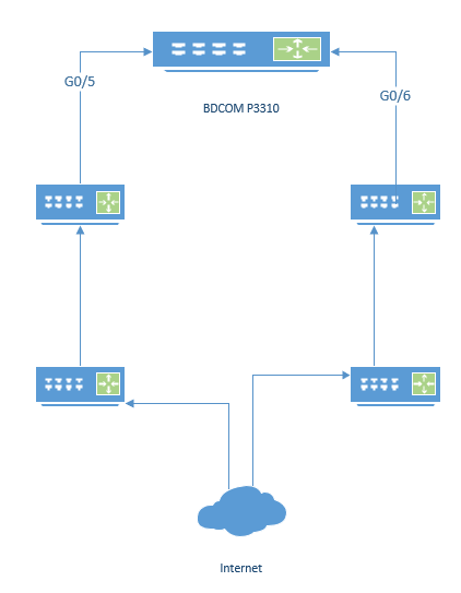 proftp666 Posted November 23, 2022 Здравствуйте. Хотим организовать сеть в виде колец. В итоге если к примеру одна линия упадет, то по другой линии интернет будет подаваться. Схему приложил. Вопрос как это настраивается на BDCOM? Не могу найти мануал, какие команды или функции использовать. Подскажите пожалуйста. Вставить ник Quote Ответить с цитированием Share this post Link to post Share on other sites More sharing options...