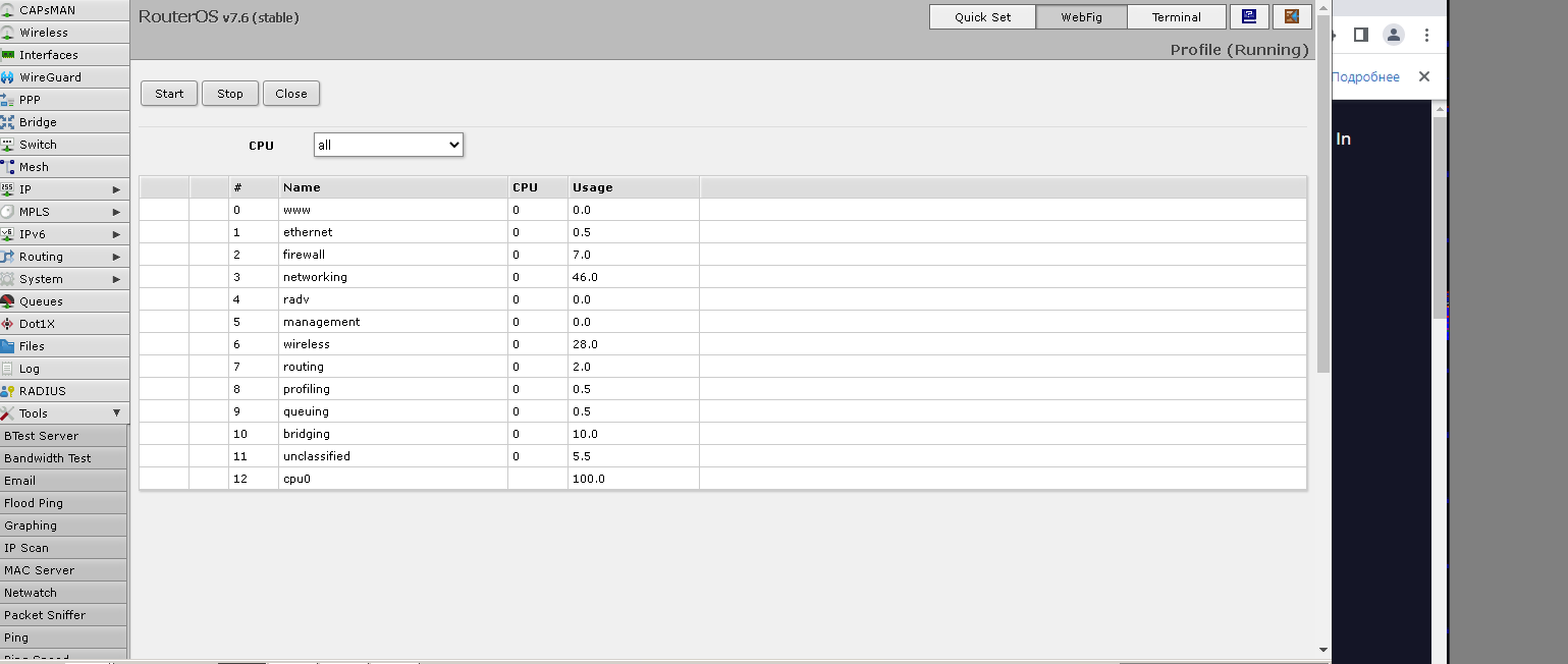 ypcyl Posted December 10, 2022 Posted December 10, 2022 (edited) Добрый день, после прошивки 7.6 моста, на базе загрузка процессора стала 100%, при меньшем значении трафика, на 30-40% меньше, чем при старой прошивке 6.48.6. На клиенте при максимальной загрузки базы, загрузка процессора 50%. Подскажите как сделать нагрузку на процессор меньше или откатить на старую прошивку (пробовал не откатывается).https://disk.yandex.ru/i/SuMz1Zyes3_UuA Edited December 10, 2022 by ypcyl удалил лишние файлы Вставить ник Quote
