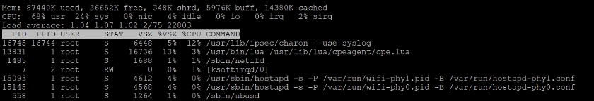 VolanD666 Posted April 5, 2023 Добрый день! Есть точка доступа на базе OpenWRT, проблем в высокой загрузке CPU в выводе команды top. К сожалению, мне не хватает знаний в области Linux систем, чтобы понять почему сумма всех процессов значительно ниже суммы общей загрузки. Пробовал ставить htop и atop, они показывают тоже самое. Пробовал гуглить, но ничего не помогло. Подскажите, пожалуйста, что можно еще посмотреть? Вставить ник Quote Ответить с цитированием Share this post Link to post Share on other sites More sharing options...