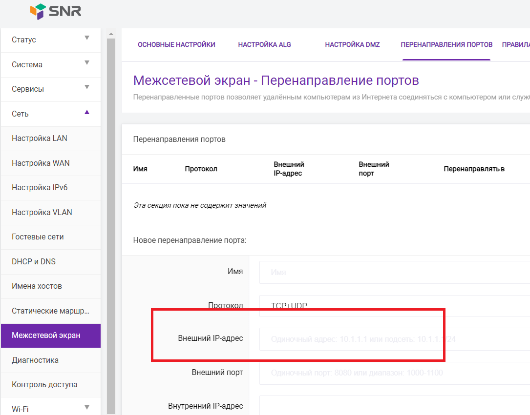 d.mitrichev Posted April 28, 2023 (edited) @nilford Здравствуйте! WEB-интерфейс вашего маршрутизатора выглядит так же, как на скриншоте? В нашей новой прошивке EasyWRT (скриншот), в настройках проброса портов, есть поле "Внешний IP", которое позволит указать определенный адрес. Edited April 28, 2023 by d.mitrichev скриншот изменен Share this post Link to post Share on other sites More sharing options...