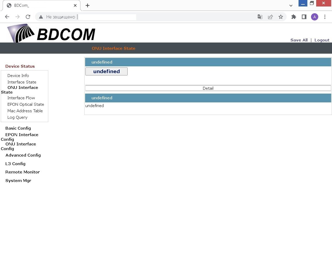 sheft Posted May 5, 2023 Posted May 5, 2023 после обновления прошивки до 10.1.0F Build 105516 в вебморде перестали отображаться данные по онушкам в onu interface state - на страничке - undefined на страничке ONU Bandwidth Config тоже пустой список вебморду совсем поломали? BDCOM(tm) P3608-2TE Software, Version 10.1.0F Build 105516 Copyright by Shanghai Baud Data Communication CO. LTD. Compiled: 2022-11-8 12:34:52 by SYS, Image text-base: 0x10000 ROM: System Bootstrap, Version 0.4.5, Serial num:00315004705 System image file is "Switch.bin" hardware version:V1.0 (RISC) processor with 262144K bytes of memory, 32768K bytes of flash Base ethernet MAC Address: 84:79:73:df:cb:82 PCB version:B snmp info: product_ID:2009 system_ID:1.3.6.1.4.1.3320.1.2009.0 Вставить ник Quote