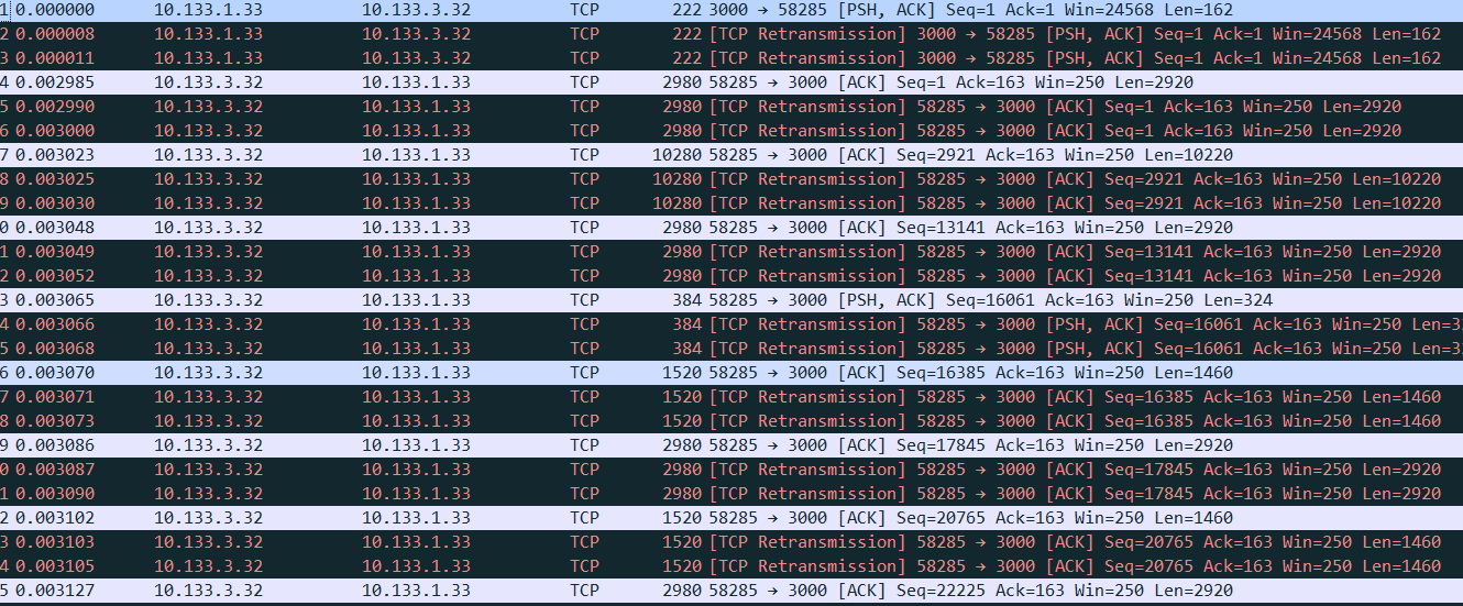 Владимир320 Posted October 28, 2023 Author Posted October 28, 2023 Это все понятно. Меня мучает вопрос как длина при разборе tcp может так прыгать? Слушаю трафик на проксмоксе с другой тачкой и вижу нормальную картину: где len имеет одинаковое значение. У меня остается мысль это насильно изменять mss, чтобы чудес не прилетало... Вставить ник Quote