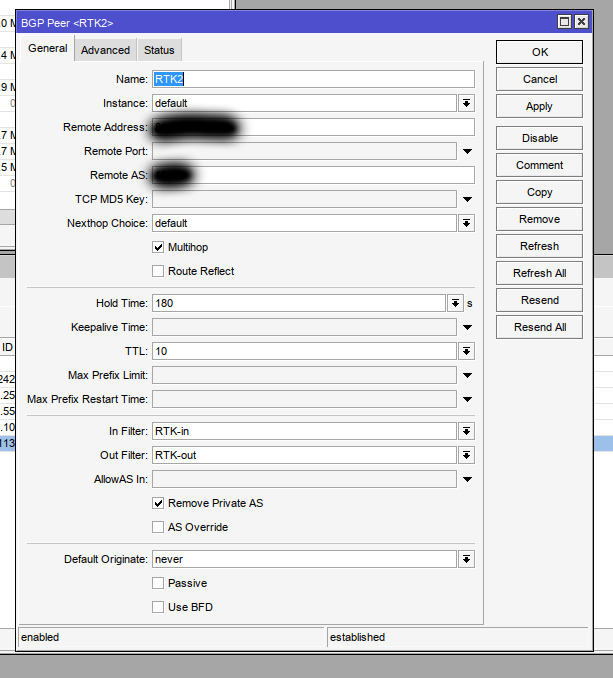 DeLL Posted January 15, 2024 Posted January 15, 2024 Один пир - мультихоп. Интересная (ипанутая) схема у ртк. В фильтрах нет ничего криминального? И в ROS7 лучше руками указывать src, а также сделать руками Router ID и воткнуть его в шаблон одно дело если сессии с ртк не поднимаются, другое - если траф не ходит Вставить ник Quote
