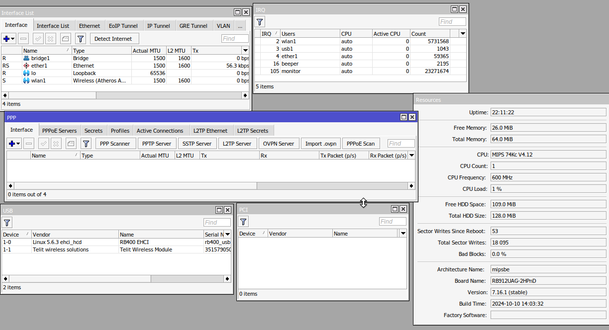 adsl Posted November 12, 2024 Здравствуйте. Установил модем Telit HE910-D в RB912, а плата его не видит. Обновил ROS до 7-ой версии, но результат тот же. Может кто знает дополнительные/скрытые инструменты для настройки? Share this post Link to post Share on other sites More sharing options...