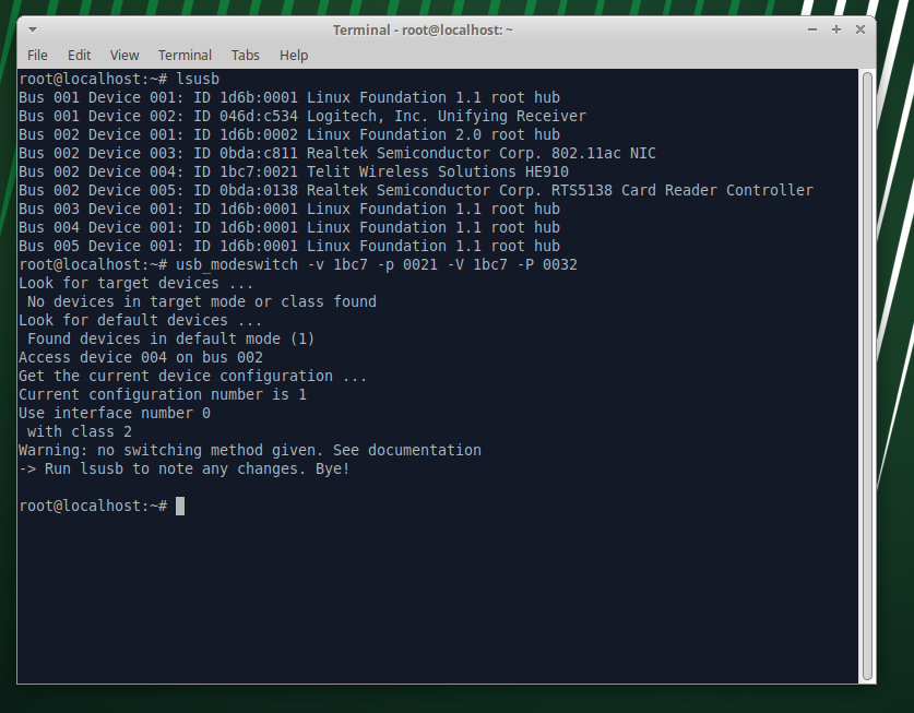 jffulcrum Posted November 13, 2024 0x0021 по доке это '6 CDC-ACM devices' Гипотетически usb_modeswitch -v 1bc7 -p 0021 -V 1bc7 -P 0032 , но я с Telit особо дел не имел, и , возможно, он еще ждет что-то в поле M, как Huawei Share this post Link to post Share on other sites More sharing options...