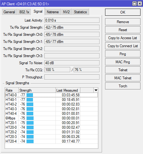 sheft Posted February 15, 2025 Posted February 15, 2025 а на изменение tx power реагирует? что вообще установлено -default, manual, card rates, fix? 10-20db.. это не перекос поляризации? сколько чейнов, оба работают? Вставить ник Quote