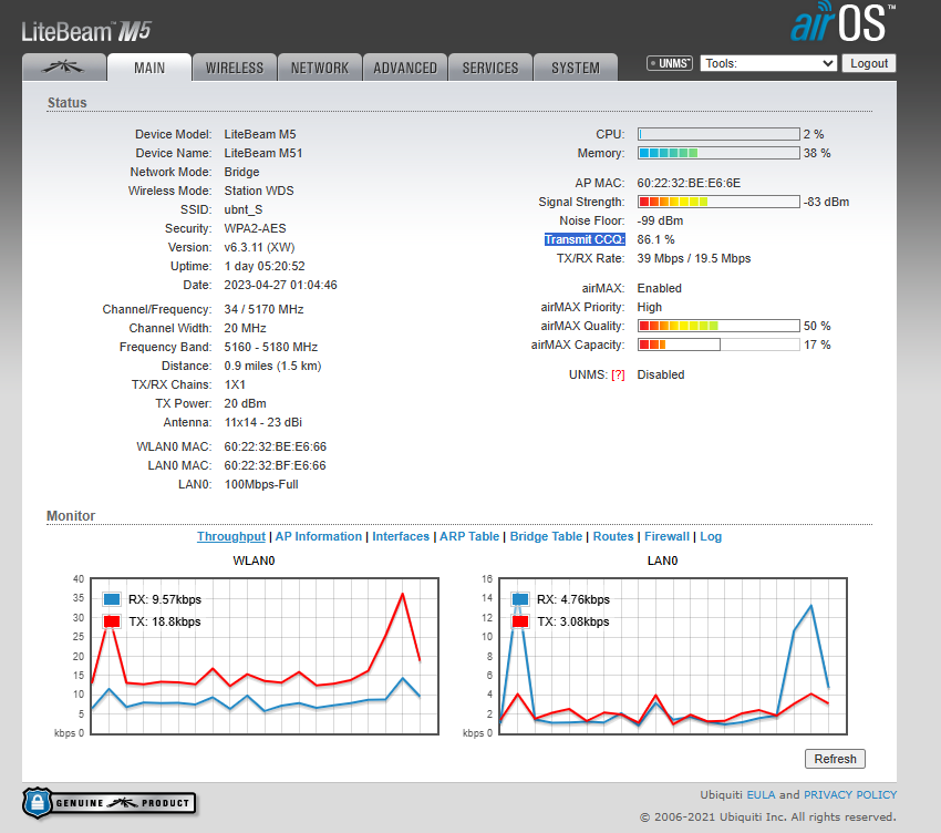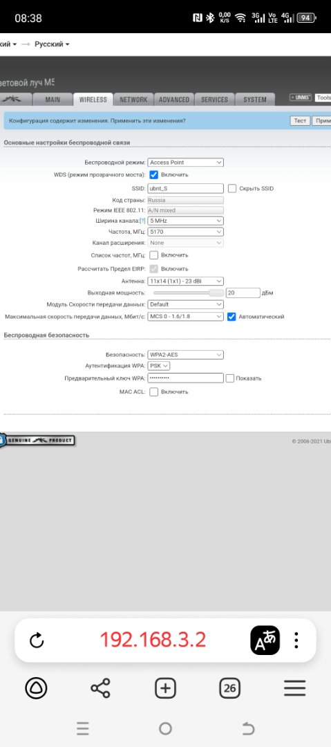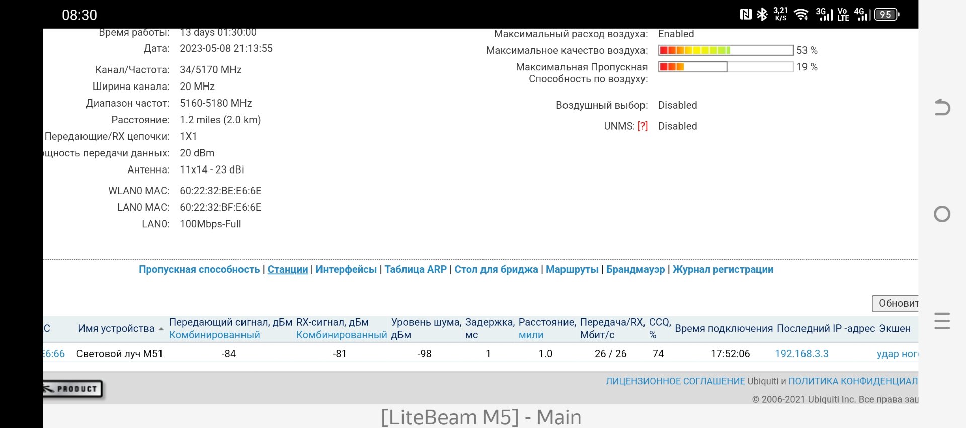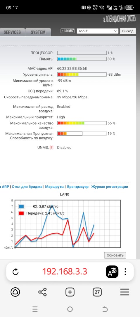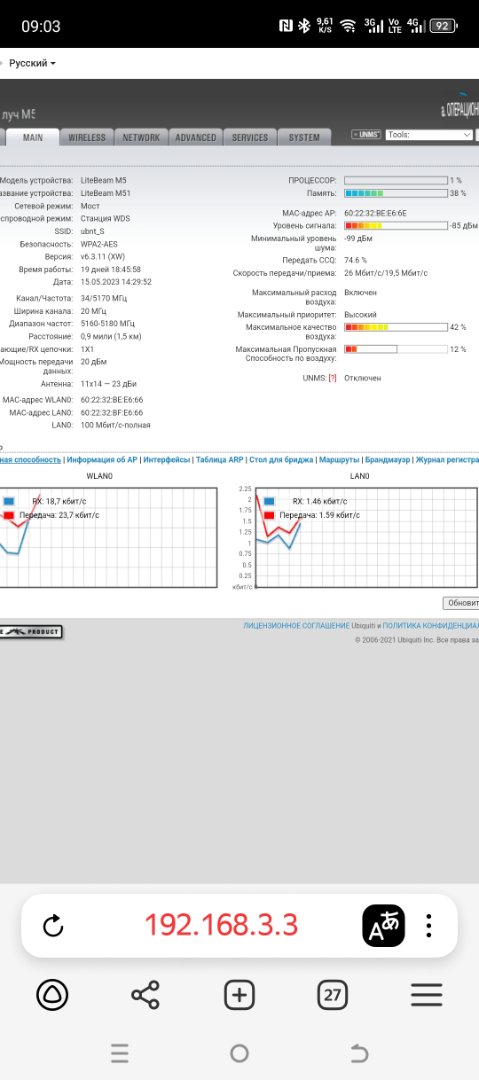 tutaev Posted May 12, 2025 Posted May 12, 2025 (edited) Всем привет. подскажите по настройкам моста, расстояние 1,7км, прямой видимости нет. с города, от крайнего дома, с крыши 9ти этажки, передающая антенна Антенна Ubiquiti LiteBeam M5-23 - LBE-M5-23. а дача за речкой, деревней и деревьями. стоит у крыши 2го этажа принимающая такая же антенна. дома скорость 90+/-. на даче 3+/- может с настройками что то не так? в инструкции антенна до 25 км, правда прямой видимости...) Edited May 12, 2025 by tutaev доп Вставить ник Quote