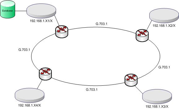 Tolka Posted January 19, 2007 Posted January 19, 2007 День добрый! Вообщем столкнулся с такой задачей. Есть территориально-распределенная сеть. К каждому узлу сети (показаны, как маршрутизаторы) подходит 2 линка, интерфейс G.703.1 (поток в 64 кбит/с). Сеть закольцована. На каждом узле сети крутиться процесс, которому необходим доступ к Database (mysql). К каждому узлу сети подключена небольшая локалка, максимум на 16 адресов (хотя если необходимо, то можно отвести всю сетку C). Интерфейс локалки - Ethernet. Каждый компьютер из локалки должен видеть Database. При падении линка между двумя маршртизаторами, информация должна передаваться по существующему маршруту. Что сделано: 1. линк между маршртизаторами поднимается с помощью pppd, интерфейс G.703 выглядит в системе, как обычный последовательный порт (/dev/serX или /dev/ttySX). 2. между двумя узлами работает протокол bgp. Увязать более 2-ух узлов пока не дошли ручки. какие ещё протоколы возможно использовать? или оптимальней? Возможно ли, чтоб сети 192.168.1.X1, 192.168.1.X2, 192.168.1.X3... находились в одной подсети? т.е. узлы сети работали как мост? какие у этого решения подводные камни? С Уважением, Анатолий. ps: картинка сети в файле Вставить ник Quote