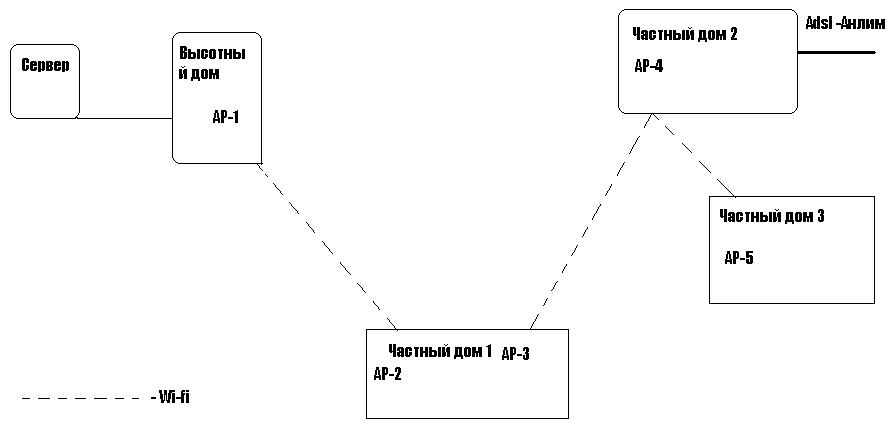 Fosgen Posted January 20, 2007 Posted January 20, 2007 (edited) Есть 3 частных дома. Дом 1 подключен к локальной городской сети №1 с высотного дома через точки доступа D-link dwl-2100 ap и параболы. Также на этом доме стоит еще одна точка - на частный дом 2. На доме 2 Есть безлимитный интернет который надо распределить на все три частных дома. Третий дом коннектится к также к дому 2. Есть сервер, к которому подключены три отдельные городские локальные сети (он стоит в той же подсети, что и частный дом 1): Итак прошу помощи по следующим вопросам: 1.Как распределить анлим с частного дома 2 по wi-fi на все 3 частных дома и какое для этого нужно оборудование. 2.Необходимо, чтобы во всех трех частных домах по возможности было все три отдельные локальные сети и какое куда нужно поставить оборудование? 3.Айпи адреса использывать с сервера через нат. 4. Точки доступа 3,4,5 не должны быть видны в городских локальных сетях. 5. Какое п\о необходимо поставить на компьютеры? Заранее всем спасибо С уважением Edited January 21, 2007 by Fosgen Вставить ник Quote