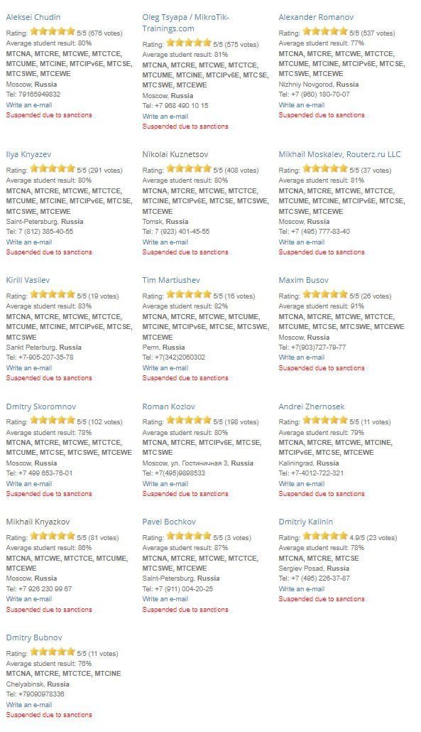 Andrei Posted March 16, 2022 Posted March 16, 2022 В 15.03.2022 в 16:57, alcool сказал: микротик С 15 марта 2022 у всех официальных тренеров MikroTik в РФ приостановлено действие тренерских сертификатов. Официальные тренинги MikroTik в РФ больше не проводятся. Все инженерные сертификаты действительны до окончания их срока действия . Вставить ник Quote