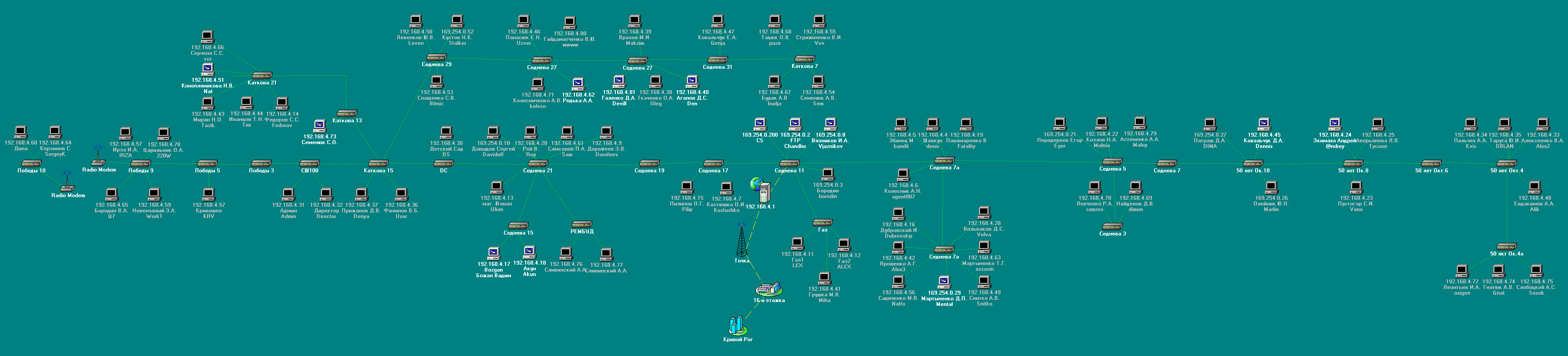 SMi Posted April 29, 2007 Posted April 29, 2007 Я вам наверное сейчас новость скажу, в Фпингере есть возможность под нарисованую вами карту класть подложку, мы как правило план города туда суем. Так вот если бы мы тут видили здания и то как по ним ваша сеть идет, мы бы объяснили где ставить роутеры, умные свичи, что переделать, где закольцевать. Я так понял что инэт у вас идет по радио из Кривого Рога. Так вот по радио 4 мегабита чистыми передать проблематично, если вы у провайдера не единственный клиент. И сколько вы платите за полосу? Если полоса "гарантированая" она стоит много, я не думаю что вы бы осилили ее с таким количеством пользователей. Вставить ник Quote