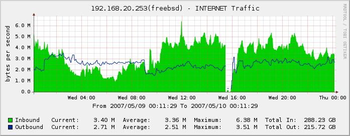 witch Posted May 10, 2007 Posted May 10, 2007 (edited) Стоит P4, который с HT, 2.4GHz, 1 гиг памяти, хард IDE 120гиг, одна встроенная сетевуха Intel 10/10/1000, вторая PCI 10/100 тоже Intel. роутер Под биллинг UTM5 железо почти такое-же, тока памяти 512 и хард для статистики "сырой" 200 гиг Биллинг, тока сетевуха там реалтек... (UTM5 при такой нагрузке на канале за 4 месяца забивает 200 гиг полностью!) Биллинг UTM5 в инете 1000 пользователей. - днём в среднем 400-500 вечер-ночь - до 1000 но быстро уходят спать... :) NAT и PIPE вроде понятно.... основа анлимщики Edited May 10, 2007 by witch Вставить ник Quote