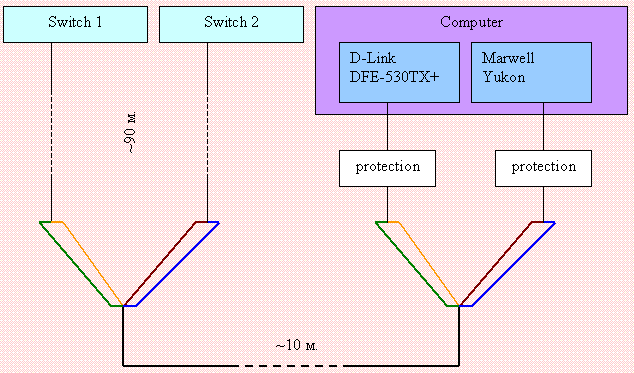 misha mike Posted September 30, 2007 Posted September 30, 2007 Имеется два линка, оба на грани ста метров. С одной стороны неизвестные свичи, с другой -- около десяти метров (по причине недавнего ремонта в квартире, мать его) пропущены по одному кабелю и воткнуты через защиты в сетевые карты. Зелено-оранжевые пары включены во внешний D-Link DFE-530TX (на базе какого-то чипа D-Link, программно совместимого с RTL8139), сине-коричнавые -- в набортную гигабитную Marwell Yukon. Проблема в том, что когда начинаю интенсивную прокачку через Marwell, пакеты через D-Link ходить прекращают. Сам линк не падает, временное удаление защит ничего не дает. В то же время прокачка через D-Link никакого влияния на Marwell не оказывает. Может ли этот эффект быть следствием десатиметрового общего куска? Что можно тут поделать? Вставить ник Quote