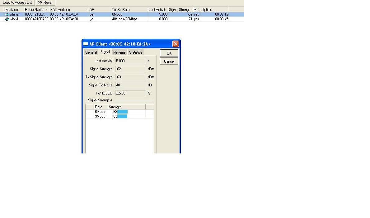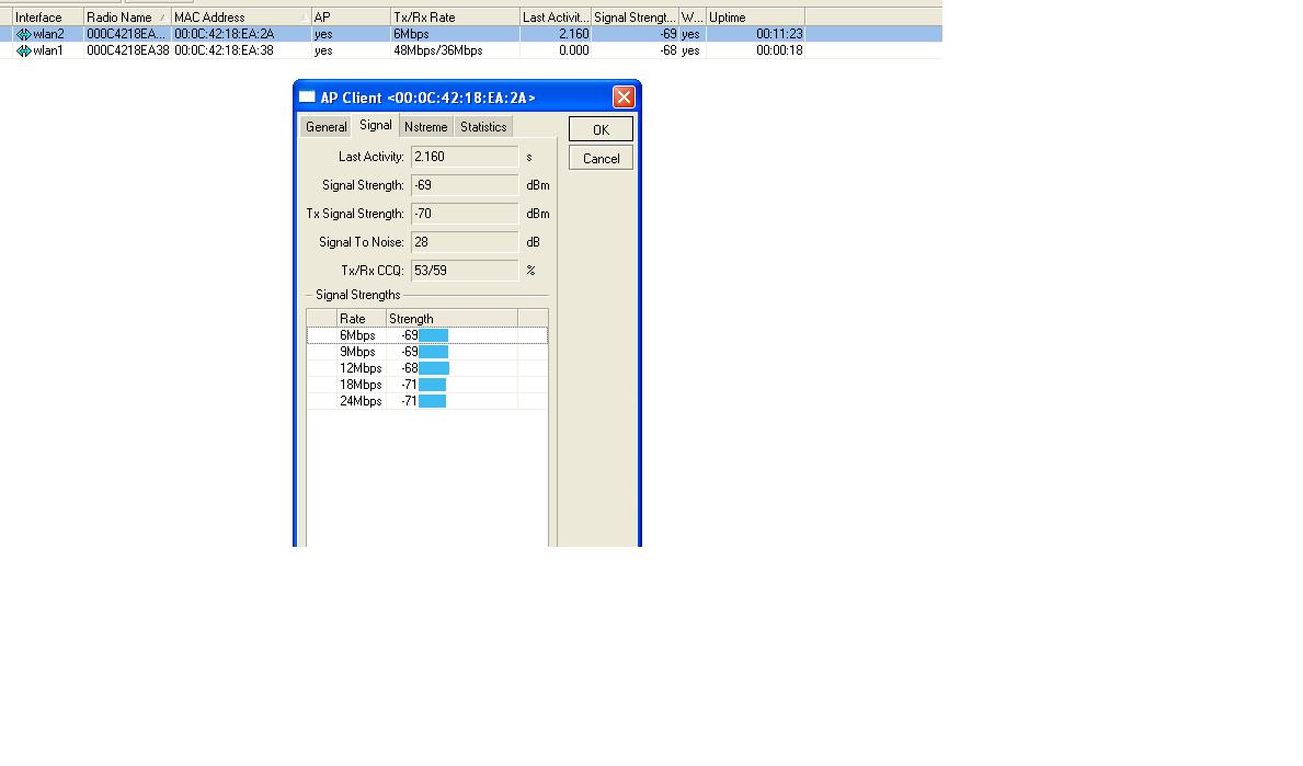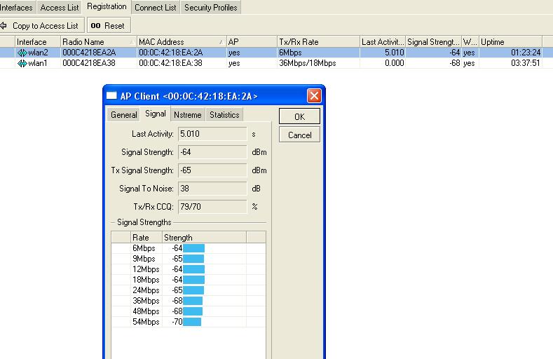 Jura Posted April 27, 2008 Author Posted April 27, 2008 (edited) перед этим стояли см9 ситуация была та же,попробовал помощнее. С одной стороны длинные кабеля около 9 метров кабеля S-400 на обоих концах только наконечники N -tipa никаких переходников. С другой стороны s-240 kaбель длина около 2.5 м. Поменял поляризацию ситуация та же. уровень сигнала на обоих линках около 70 дБм. скорость соединения на одном 36-48 мбпс,на другом только 6. сменил частоту уровень сигнала стал лутше но скорость все равно мала. Ошибка в r52h ... этож надо не пожалеть 350мвт карточки на 1км LOL LOL LOL ... Вы банально "ослепляете" приемники ... Также желательно разнести антены и сменить на одной поляризацию на горизонтальную ... В настройках мощности ставьте manual_tx_power и уменьшайте до 5-9dbm ..уровень на входах приемника желательный в диапазоне -55 ... -65 dbm ... Разнос по частоте должен быть минимум 80Mhz ... Edited April 27, 2008 by Jura Вставить ник Quote