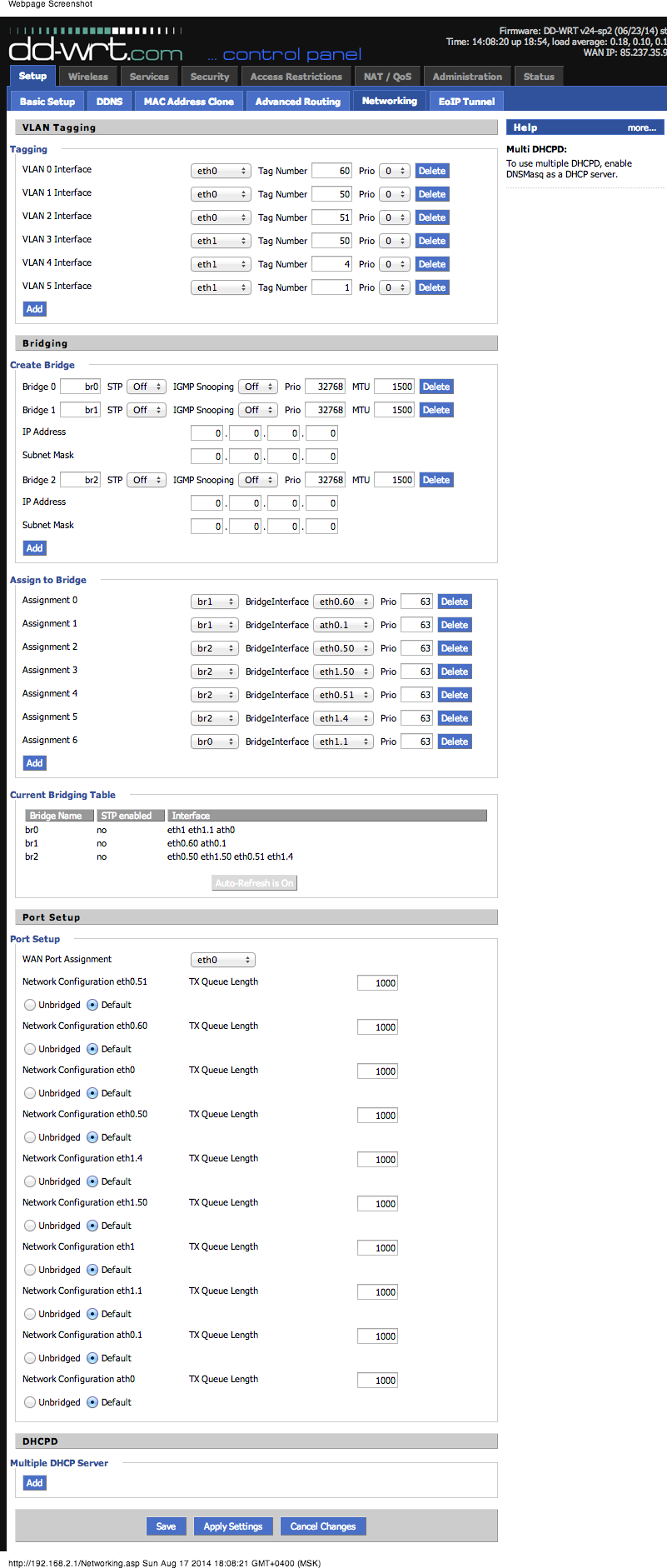 Sleipnir Posted February 20, 2011 Posted February 20, 2011 вроде разобрался:действительно, встроенный свич туповат и может всего 4 бита на VLAN ID. есть воркэраунд, работает (на стенде): на свиче с помощью robocfg выключаем поддержку VLANов. MTU у этого свича >= 1504, так что тэгированные пакеты пролазят без проблем, а линуховая eth0 прекрасно разбирается с тегами с помощью vconfig. Недостаток решения в том, что все вланы разрешены во все порты. зато нет ограничений по количеству и номерам вланов. ковыряю дальше (хочу ospf + netflow :), пишите, кому интересно Хм, прошло немало времени, но тема все еще актуальна и интересна. Я создал на форуме dd-wrt тему http://www.dd-wrt.com/phpBB2/viewtopic.php?p=538847#538847, где описал, то, что удалось найти. Цитирую: ------------------------------------------------------------------- Приветствую, господа! Краткая предыстория. Сидел на DSLе (Интернет+IPTV). Перешел на Ethernet. Меняю железо. Покупаю Netgear 3500L. Прошиваю DD-WRT. И тут появляются вопросы. Дело в том, что провайдер раздает по Ethernet'у интернет в VLAN 1, а IPTV в VLAN 19... И как быть, спрашивается??? Прошерстил русскоязычную часть форума, нашел, видимо, земляка с примерной проблемой: http://www.dd-wrt.com/forum/viewtopic.php?t=83315 Ни одного ответа. Поизучал буржуйскую часть форума. И вот что я нашел. СВЕЖАТИНА! http://www.dd-wrt.com/phpBB2/viewtopic.php...p;postorder=asc В этой теме пользователь cron2 озадачен проблемой поддержки VLAN >15 на чипе 53115. И, знаете, проблема решена!!!! Обладатели данного чипа могут радоваться!!! VLANы больше 15 РАБОТАЮТ! В этой теме http://www.dd-wrt.si/phpBB2/viewtopic.php?...asc&start=0 уже используют наработки cron2. Информацию по этой теме считаю археактуальной! Т.к. в настоящий момент чуть ли не накаждом угла кричат, что поддержки VLANов больше 15 нет. Что указано даже в документации, wiki и т.д. Ну, и естественно она важна для меня и не только, но и тем, кому повезло с провайдерами раздающими подобные вланы. cron2 выкладывает, как исходники самого патча, решающего проблему (http://www.dd-wrt.com/phpBB2/download.php?id=18164), так и сам патченый модуль switch-robo (http://www.dd-wrt.com/phpBB2/download.php?id=18217). И все казалось бы хорошо. Хоть мечтай и жди нового релиза... Но все это происходило чуть ли ни вчера, а потому официального релиза прошивки с поддержкой VLANов нужно еще дождаться. А пока все надо делать самим, своими руками. Вот тут я и обращаюсь за помощью ко всем... Дело в том, что с *nix системами я знаком шапашно, хотя на работе и гоняю целый парк кисок. Но до *nix'ов так и не доросли руки. Как говорится, руки у нас золотые, только растут из задницы :D Помогите, господа! Как мне и прочим страждущим прикрутить вышеуказанное к нашим роутерам? Ведь не каждый в нашей стране спец по линуху! Что делать? В каком порядке? Потому как в теме-источнике ничего такого не указано :( Не оставьте в неведении и глуши незнания русскоговорящих пользователей dd-wrt! Заранее благодарю!Приветствую, господа! Краткая предыстория. Сидел на DSLе (Интернет+IPTV). Перешел на Ethernet. Меняю железо. Покупаю Netgear 3500L. Прошиваю DD-WRT. И тут появляются вопросы. Дело в том, что провайдер раздает по Ethernet'у интернет в VLAN 1, а IPTV в VLAN 19... И как быть, спрашивается??? Прошерстил русскоязычную часть форума, нашел, видимо, земляка с примерной проблемой: http://www.dd-wrt.com/forum/viewtopic.php?t=83315 Ни одного ответа. Поизучал буржуйскую часть форума. И вот что я нашел. СВЕЖАТИНА! http://www.dd-wrt.com/phpBB2/viewtopic.php...p;postorder=asc В этой теме пользователь cron2 озадачен проблемой поддержки VLAN >15 на чипе 53115. И, знаете, проблема решена!!!! Обладатели данного чипа могут радоваться!!! VLANы больше 15 РАБОТАЮТ! В это