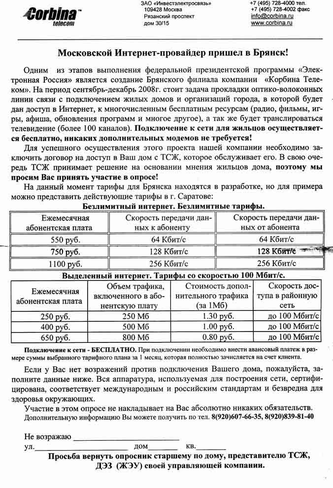 kostich Posted September 4, 2008 Author Posted September 4, 2008 (edited) Вот такими листовками народ засыпали.Сначала пусть ответят на вопрос из анекдота -Доктор говорит своему психически больному пациенту:"За последние 6 месяцев мы добились большого прогресса в вашем состоянии". "Доктор, о каком прогрессе вы мне рассказываете? Полгода назад я был Наполеоном, а кто я сейчас?" Кстати, а разве в Брянске некому устроить пчёло-корбине Сталинград? К тому же даже без Сталинграда, от момента высадки первых корбиновских таджиков до нормальных массовых включений года два минимум. Да, но таджики на машинах с корбиновским лого маячат на каждом углу уже... и это к лучшему надо заметить, местным просраться не мешает и пересмотреть свои цены. Сталинград еще не скоро будет, сейчас там Октябряская во всю - телефон, телеграф и канализуха захвачены рабочими. ps. там еще есть брянсктел, который вроде бы как голда купила.... так вот у него говорят приличная часть города каблом обтянута. может гарбинушка про тропинушке проложенной на крейсерской скорости залетает? Edited September 4, 2008 by kostich Вставить ник Quote
