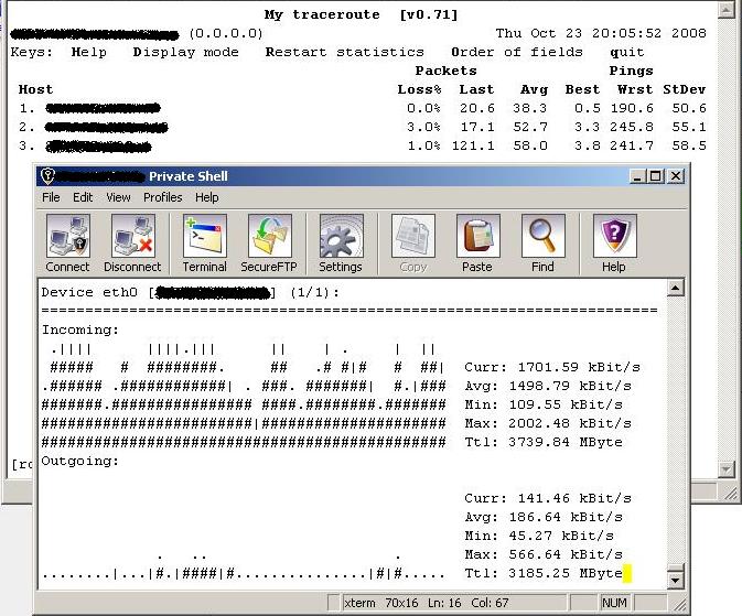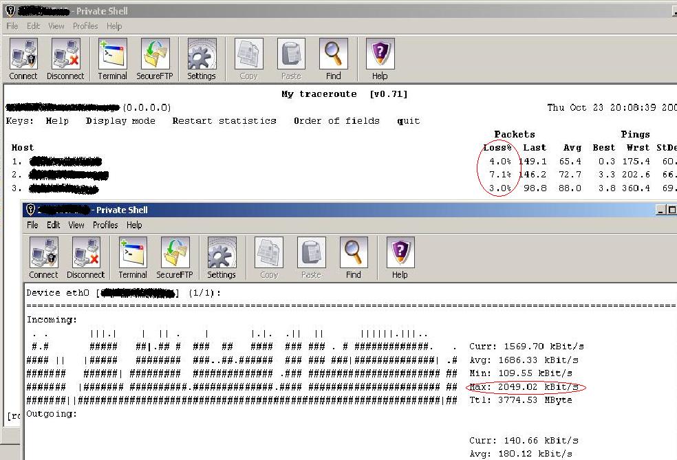 AlKov Posted October 25, 2008 Posted October 25, 2008 (edited) Покупаем у провайдера "полосу" 2М (2048 Кбит/с). БЛАНК-ЗАКАЗ НА ОКАЗАНИЕ УСЛУГ ПЕРЕДАЧИ ДАННЫХ И ТЕЛЕМАТИЧЕСКИХ СЛУЖБ В СЕТИ ИНТЕРНЕТ Тип соединения/интерфейс FastEthernet Адрес подключения ХХХХХ Основные услуги № п.п. Наименование услуги Тарифный план Условия оплаты Единица тарификации Стоимость 1 Абонентская плата за Интернет-трафик (пропускная способность канала – 2048Кбит/с) Тарифицируется с цифрового порта по адресу: ХХХХХ По факту шт. ХХХХХ руб./мес. Начиная с загрузки полосы в 1,5М, идут потери пакетов.. Дальше- больше. См. картинки. (1-й IP - шлюз, последний - "крайняя железка" провайдера). Пров утверждает, что проблема с нашей стороны из-за перегрузки канала ("пиковыми выбросами"). Я в шоке - не могу сообразить, каким это образом мы можем сделать перегруз по входящему трафику??? Вроде бы всегда и везде считалось и надеюсь до сих пор считается, что управлять входящим трафиком невозможно и его можно либо принять, либо дропнуть (применительно к нашему случаю). Взяв версию того, что либо пров оговорился, или я его не понял, проверяю исходящий траф (ну тут точно можно регулировать). Как видно из картинок, до перегруза очень далеко.. Провайдер "режет полосу" рейт-лимитом (т.е. дропы явно "оттуда"), шейп реализовывать отказывает. Предлагает купить канал пошире (ну здесь все понятно. ;)). Или я излишне придираюсь и такое является нормой? Вопрос, как всегда банальный - кто виноват и что делать? P.S. Извиняюсь, запостил два раза один и тот же рисунок.. :( Удалить лишнее редактор не позволяет.. Edited October 25, 2008 by AlKov Вставить ник Quote