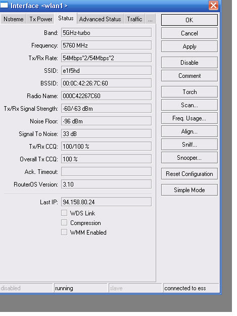biox Posted February 8, 2009 Author Posted February 8, 2009 (edited) 1. Карты R52h оказались лишними, в результате пришлось понижать tx-power только после этого CCQ вырос до 100% в обоих направлениях (по совету из глубин интернета). 2. Встроенный в mikrotik тест есть ПОЛНОЕ ФУФЛО - при всём что тут описано он показывал не более 27/7 Мбит/с, но скорость скачивания с ftp, с torrents.ru, p2p и между 2 мя ноутбуками при этом доходила до 6 Мбайт/с (что соответствует 48 Мбит/с). 3. Ping До ya.ru 5 мс. 4. Видимость прямая, но створ проходит на 2-3 градуса в стороне от кирпичной трубы котельной, находящейся на расстоянии 1 км от одной из сторон. P. S. На дистанциях менее 50 км не рекомендуют использовать карты с индексом "H" (совет из глубин интернета). Edited February 8, 2009 by biox Вставить ник Quote
