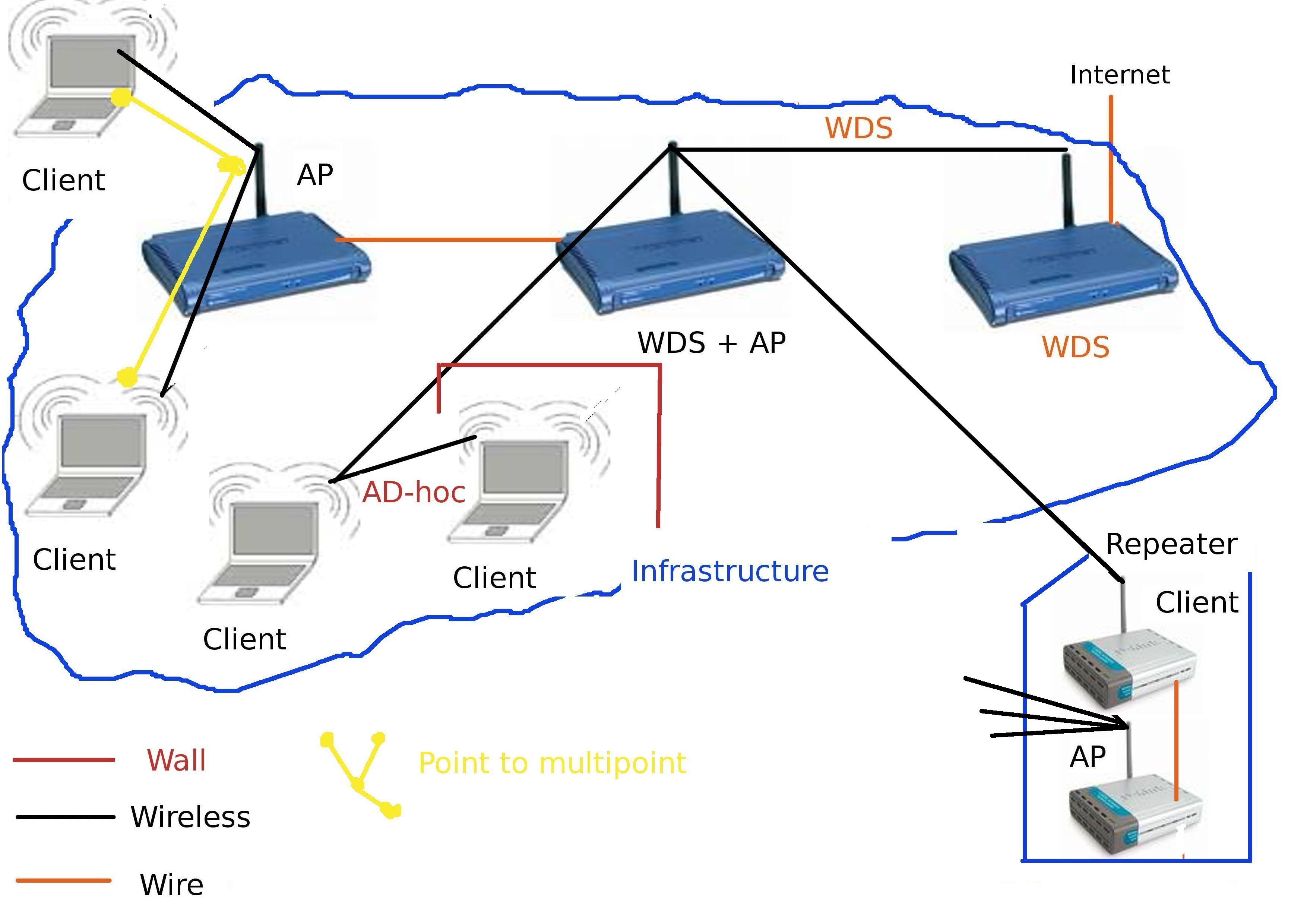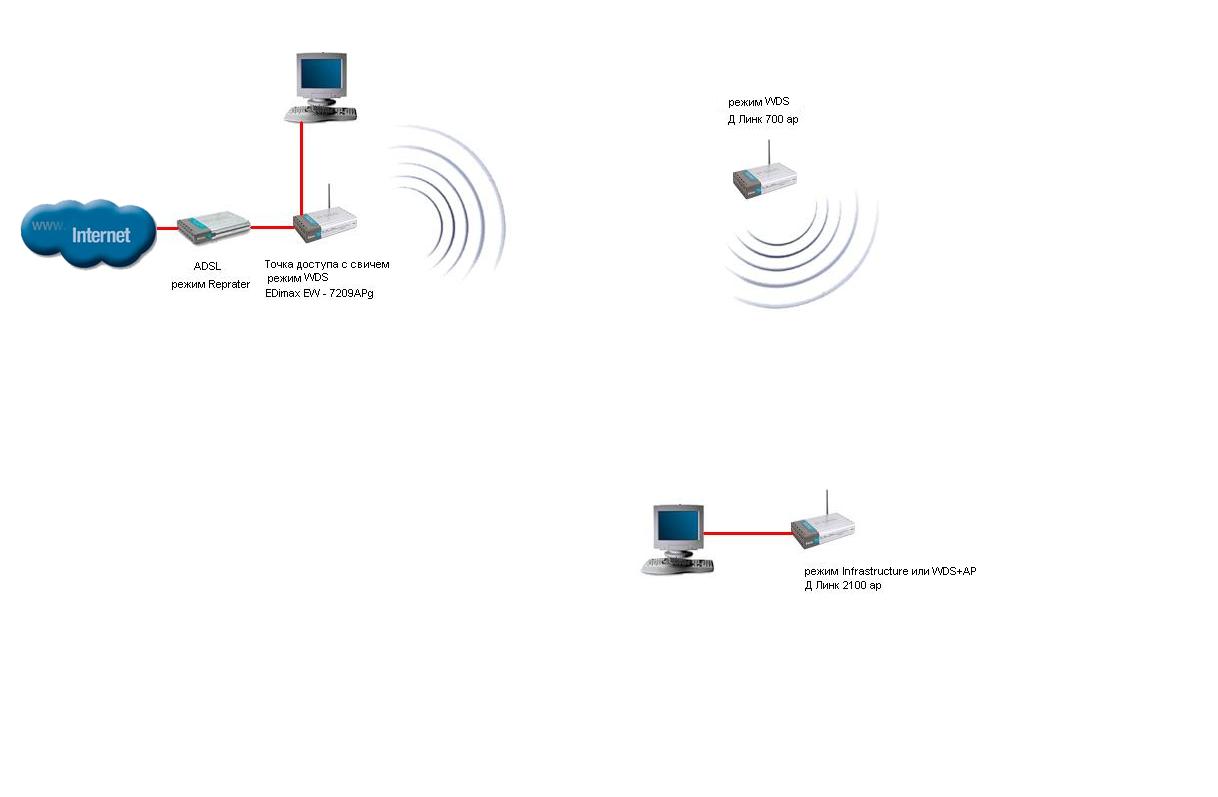ilia_2s Posted March 2, 2009 Posted March 2, 2009 (edited) 1 Access Point - позволяет многим беспроводным клиентам произвести к этой точке подключение (за точкой обычно какая-либо сеть или сервис, например интернет) 2 Ad-Hoc - http://ru.wikipedia.org/wiki/%D0%91%D0%B5%...82%D1%8C_ad_hoc 3 Infrastructure - режим крупной сети, с несколькими точками, доработка для обеспечения более качественного совместного функционала точек. 4 Poin to Point - из точки в точку, только одна железка соединяется только с другой 5 Point to Multi-Point точка доступа обеспечивает данный режим, по сути 6 WDS - мост между точками, используется для их обхединения и построения распределенных беспроводных сетей 7 WDS-AP точки соединяются вместе (режим WDS), при этом каждая также работает в режиме AP 8 Client - устройство, то что подключается к точке доступа или используется в любой из этих технологий. 9 Reprater - принимает сигнал удаленного устройства (клиент) и транслирует его, может использоваться в различных технологиях. Есть нюансы для рассуждений, по каждому из пунктов. Если что конкретно интересует, спрашивайте. Главное понять принцип, остальное вариации. В стандарте вобще только AP. Вобще надо картиночку нарисовать, так будет проще понять Edited March 4, 2009 by skydiver Вставить ник Quote