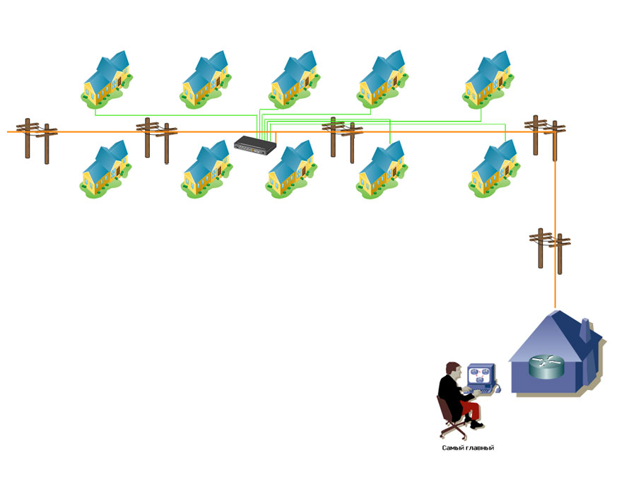 @NET Posted March 12, 2009 Author Posted March 12, 2009 (edited) Как раз PLC то из этого списка хуже всего) На других же вариантах многие успешно работают... Да мне вариант с GEPON/EPON понравился - в них заложено масштабирование сети. Это правильное решение, я одобряю :) Единственно, я немножко плаваю в четком представлении соединений. Вот на рисунке, от S505 идет линия к пассивному оптическому сплиттеру, а от него уже к абонентам. Один сплиттер может работать на 32 абонента. Т.е. получается от сплиттера нужно тянуть 32 жильный оптволоконную линию до абонента? Сорри за глупый вопрос, допустим такая линия 1 км, через 500 метров я раздал 16 жил (т.е. вывел их абонентам), а остальные 500 метров продолжения этих 16 жил будут просто пустым грузом болтаться? Нарисовал картинку (второй атач) - схема расположения абонентов в моем случае. В моем случае оптимальное решение использовать кабель с небольшим кол-во жил, чтоб полоса делилась на несколько абонентов, каждому клиенту по жиле - будет слишком жирно (во всяком случае они платить стока не захотят). Edited March 12, 2009 by @NET Вставить ник Quote