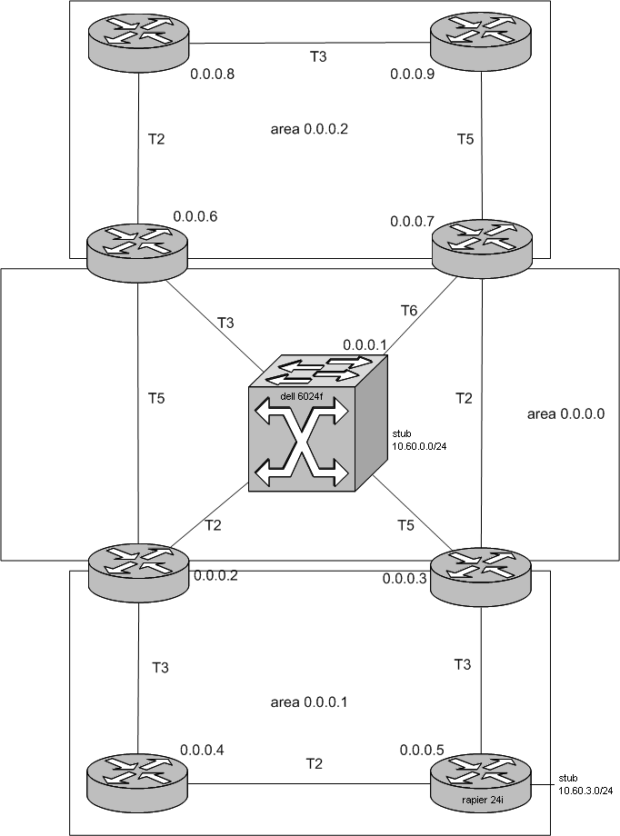 iMax Posted April 21, 2009 Posted April 21, 2009 (edited) Моя сеть OSPF имеет такую вот структуру(см. рисунок). Мне необходимо чтоб DHCP сервер(имеет к примеру адрес 10.60.0.10), который находиться в stub 10.60.0.0/24 отправлял запросы комутаторам Allied Telesis Rapier 24i каждый из который закрепил за собой STUB вида 10.60.X.0/24. Если статически прописываю адрес, то все работает, пакеты ходят от одной stub в другую. Подскажите в теории что нужно сделать, а то очень не охото на каждом Allied Telesis Rapier 24i поднимать DHCP сервер. Чтобы DHCP сервер находящийся в одной stub отправлял запросы в другую stub, т.е. тому Allied Telesis Rapier 24i за которым она закреплена. Edited April 21, 2009 by iMax Вставить ник Quote