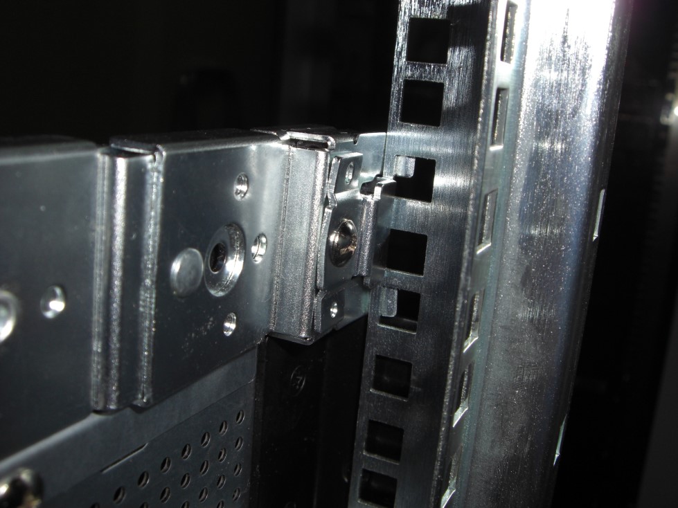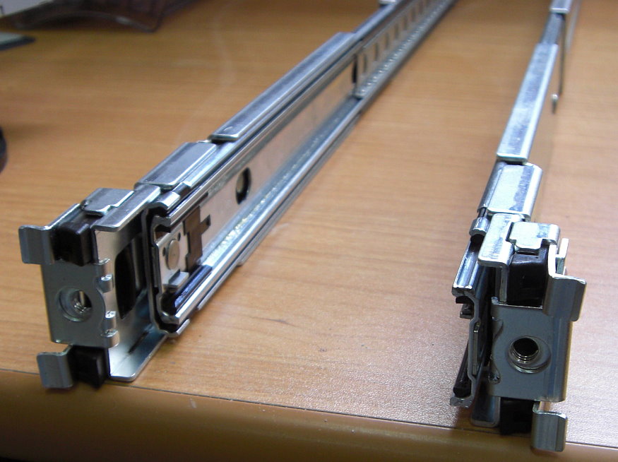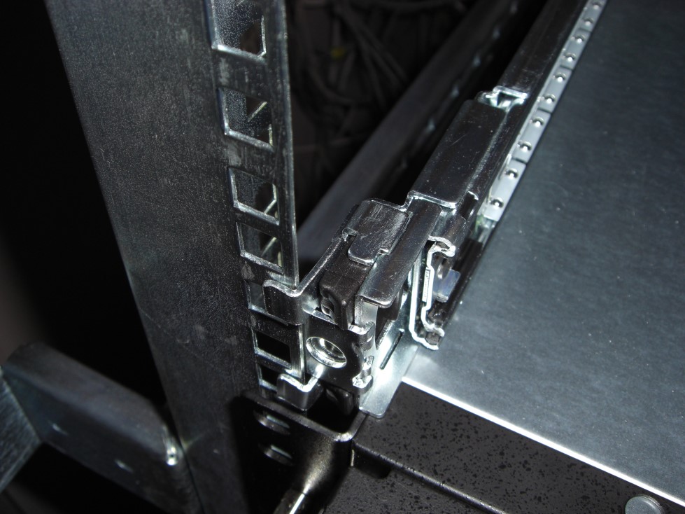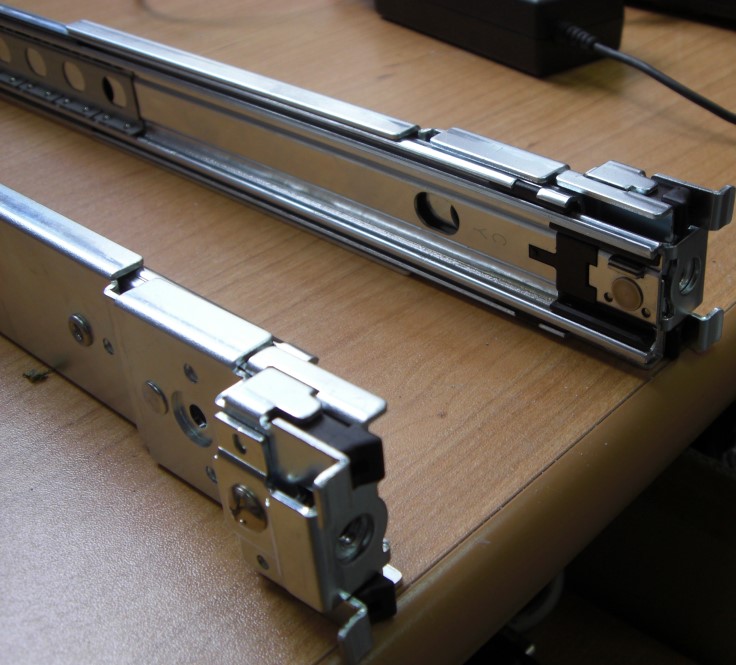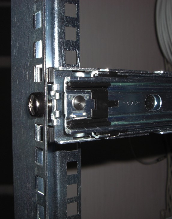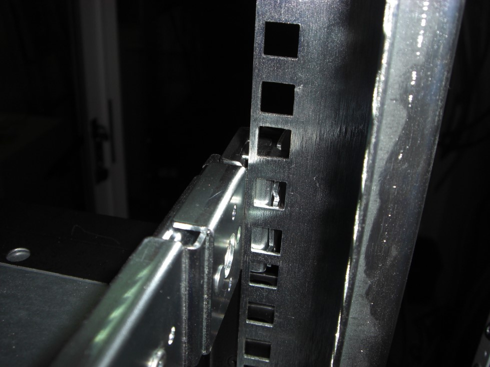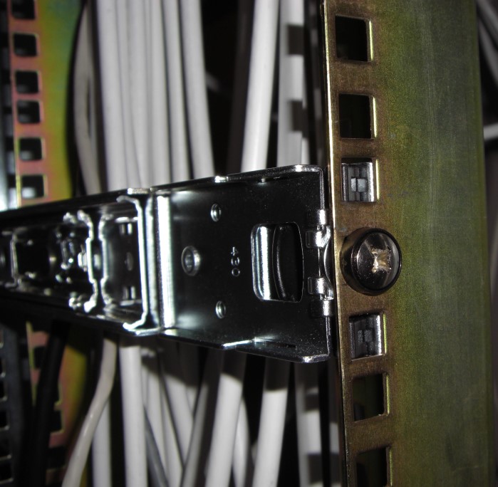 olegi Posted June 16, 2009 Author Posted June 16, 2009 ) Попробуйте раздвинуть направляющие больше 19" стоек и сводите постепенно, чтобы резьбовое отверстие оказалось снаружи, а не снутри. Длина салазок не зафиксирована. Я их могу сдвигать-раздвигать. Немного не понял, как может резьбовое соединение, оказавшись снаружи, помочь закрепить салазки? Ниже приведено ещё 2 варианта установки, но они оба не позволяют закрепить девайсы. Вставить ник Quote