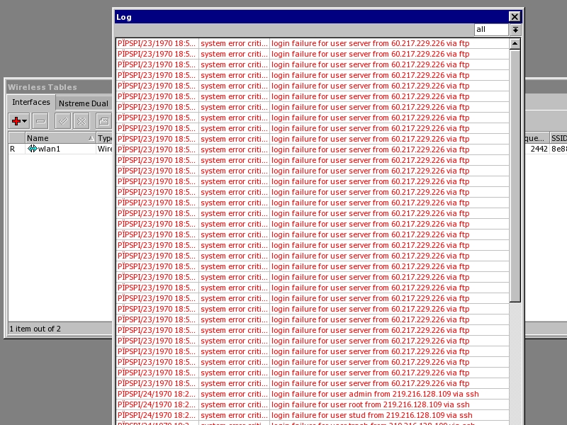 Vinetik Posted November 10, 2009 Posted November 10, 2009 дык а если закрыть порты файрволом?А какие? даже не наю по каким "бомбят" ((( Здравствуйте, уважаемые! Собственно сабж, клиент на rb411, настроен под NAT, на wlan1 белый ИП, ибо по нему снимается статистика и всё идет в биллинг, так вот этот микротик постоянно атакуют с разных ипов, под разными логинами, как защитить рутер от таких атак? он захлебывается буквально! пинги до 600 мс вырастают, зайти даж на него трудно, учитывая небольшую дальность от базовой точки (1 км) и прямую видимость, Overall CCQ 60-80 % Signal to Noise 15 dB. Есть ли возможность защитить мтик? Благодарю! Прилагаю скрин: Вобще для начала настроить фаервол. А если влоб-тупо пропишите апишник который сымает статистику,или свою подсеть. Тогда он не будет ни как реагировать. И вырубите лишниее службы! Какие именно лишние? подскажите. Да это все просто - Заходи "IP" "Services" И выкючи доступ к фтп, Веб, телнет - оставь только винбокс и SSH (только поменяй порт с 22, например, на 20) и бомбить перестанут.. Вставить ник Quote