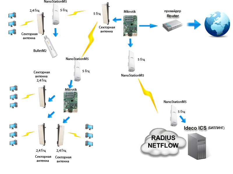 MrFix Posted March 10, 2010 Posted March 10, 2010 Уважаемые гуру, помогите правильно настроить такую связку Расстояния между точками 3-5 км Пришлось заниматься этим впервые.. прошу подробно разжевать как настроить Mikrotik + Radius + Биллинг =) В данный момент все работает в связке Nanostation +биллинг (Ideco) но клиентов всё больше и больше... по этому хочу прикрутить Mikrotik и удаленный биллинг (Ideсo) Заранее спасибо за ответы. Вставить ник Quote
