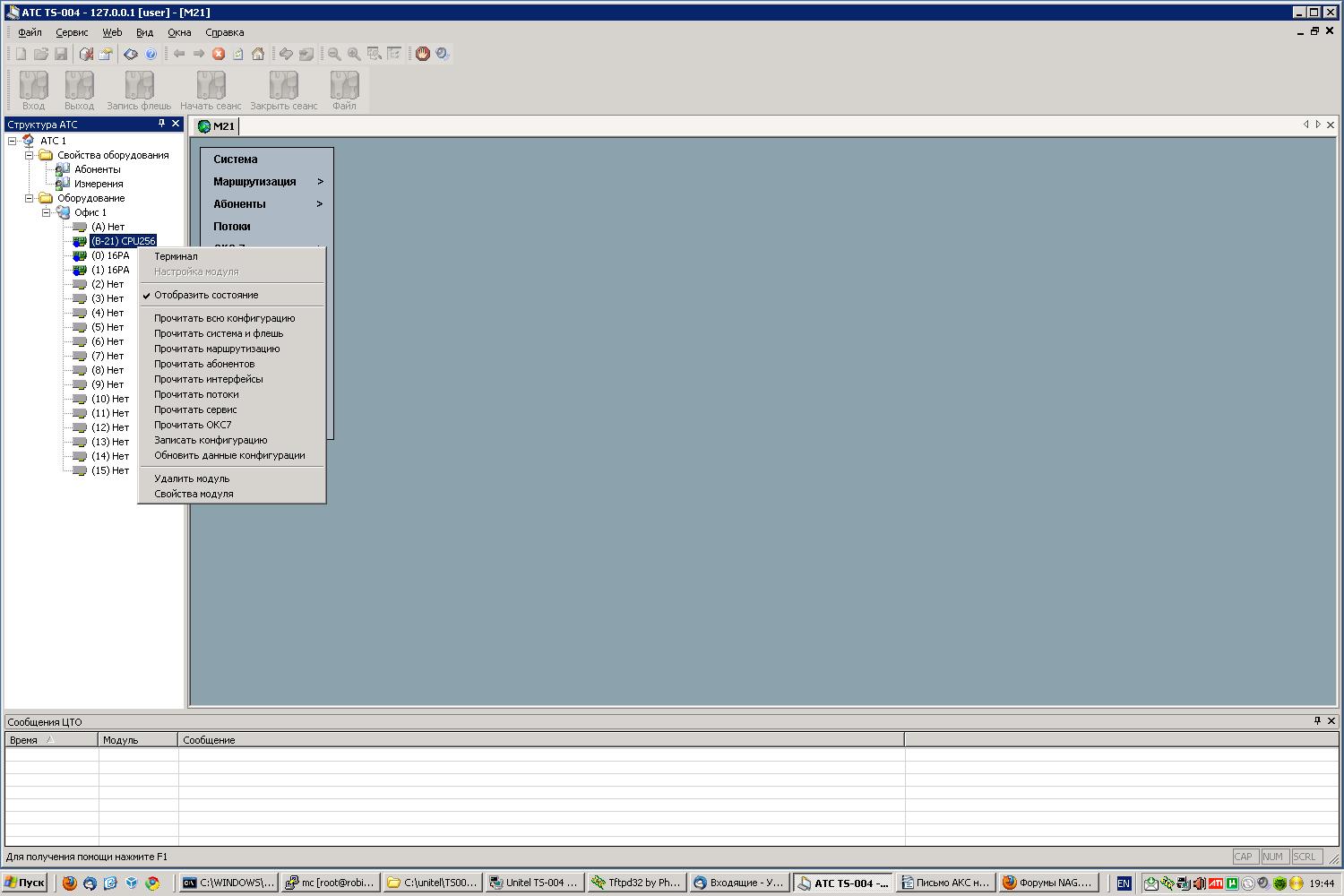 Andrei Posted March 27, 2010 Posted March 27, 2010 У меня - TS004 в варианте 6UТолько что заменили на 1U TS-004 юнителовский же АЦК ЮНИТ варианте 6U (все лежит без дела в рабочем состоянии):- шасси 6U - плата питания 48 вольт - плата управления - 3 платы потоков, по 2 Е1 на каждой (2ВСК, EDSS1) - комплект кабелей. Вставить ник Quote
