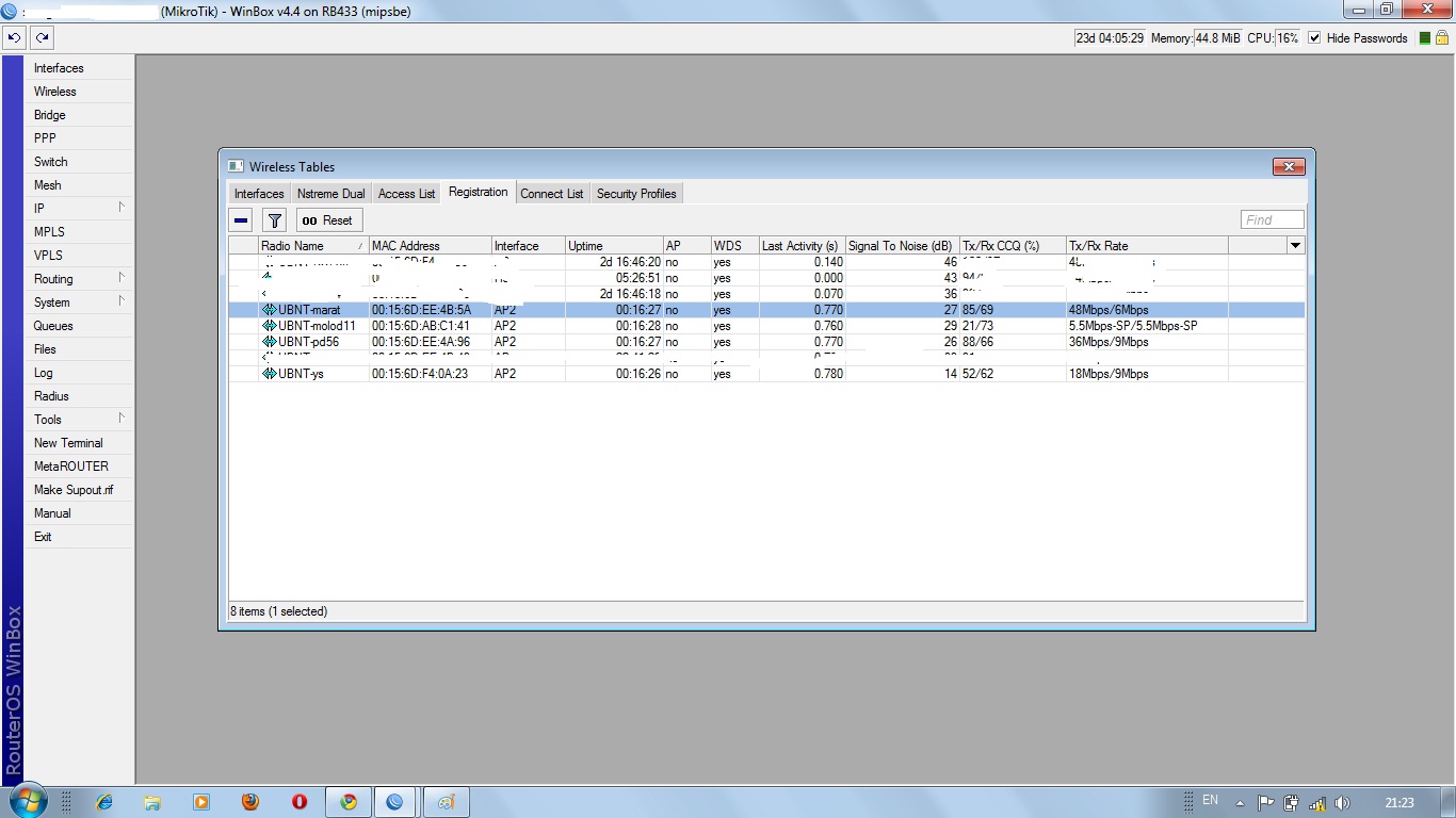 porozut Posted May 11, 2010 Author Posted May 11, 2010 CCQ это пол беды и в многоточке по большому счету не показатель, основная беда в том что даже при G-Only наносы любят скинуть скорость в 11b DSSS, тут и начинаются глюки и т.д. Мне помогла только установка карт R52n и принудительное снятие галочек с 11b скоростей на базовом микротике. Огромное спс так и поступлю. Вставить ник Quote
