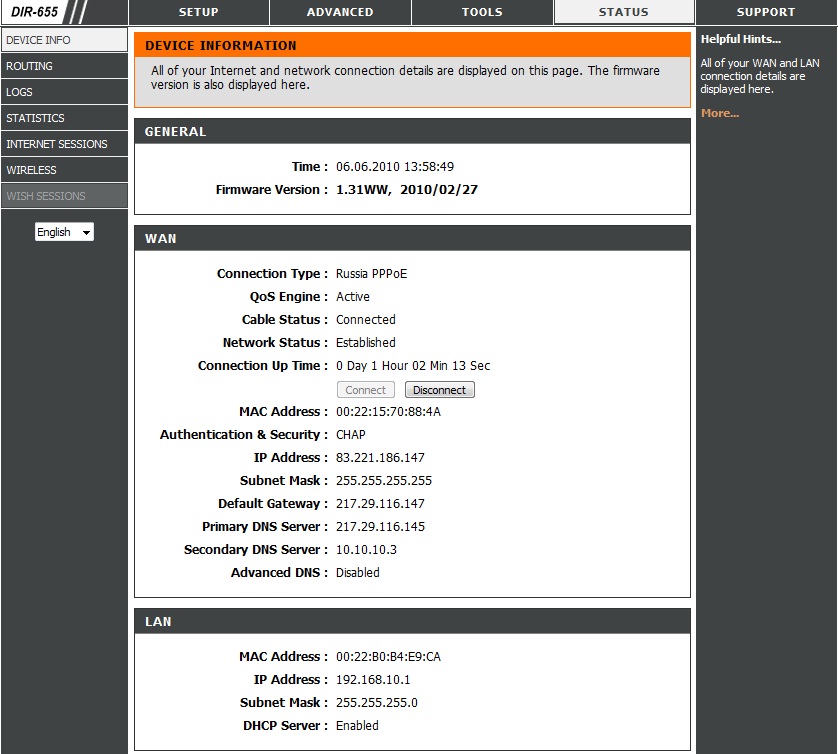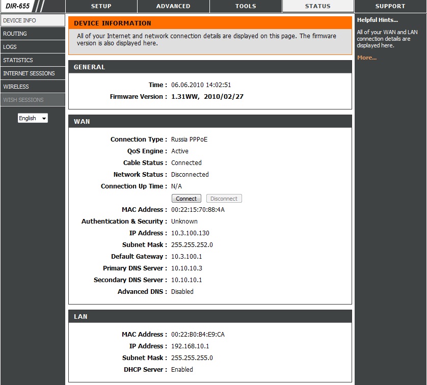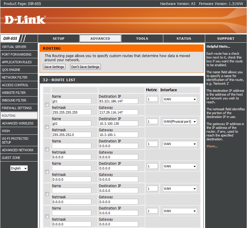 syntetico Posted June 6, 2010 Author Posted June 6, 2010 (edited) На Dlink DIR-655 прописать статические маршруты на сети провайдера. А если есть возможность поставит режим PPPoE DualAccess. режим DualAccess установлен, маршруты прописал но при сохранении прописанных стат. маршрутов, выходит ошибка Route gateway IP 217.29.116.147 is not in interface subnet p.s. незнаю может это Вам поможет вот скрины работы роутера когда интернет включен, но выключены внутренние ресурсы провайдера: и наоборот: интернет отключен, внутренние ресурсы доступны: Edited June 6, 2010 by syntetico Вставить ник Quote