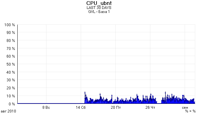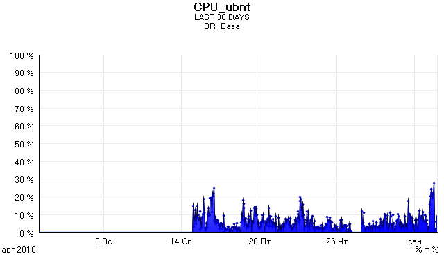 mix2 Posted September 2, 2010 Posted September 2, 2010 (edited) смотря какие клиенты, опять таки.. у нас есть сетка из двух клиентов, у одного 1 мбит безлимитка, у другого 8 мбит безлимитка. Тот у кого 8 качает, судя по мониторингу, раз в день со скачком до 2 мбит кратковременным, тот у кого единица, качает частенько. А есть еще один клиент на другой базовой станции, так у него тариф 2 мбита, так вот он зараза 80% времени грузит свой канал по максимуму, при этом ему из-за хреноватой видимости пришлось включить режим В, чтобы стабильней работало. То есть на эту базу если еще одного такого красавца подсадить, будет алис полный. кстати, судя по мониторингу процессор базового наноса он грузит в среднем раза в два больше, чем на другой базовой станции, где 2 клиента. Чтобы не быть голословным, публикую график загрузки процессора. Edited September 2, 2010 by mix2 Вставить ник Quote