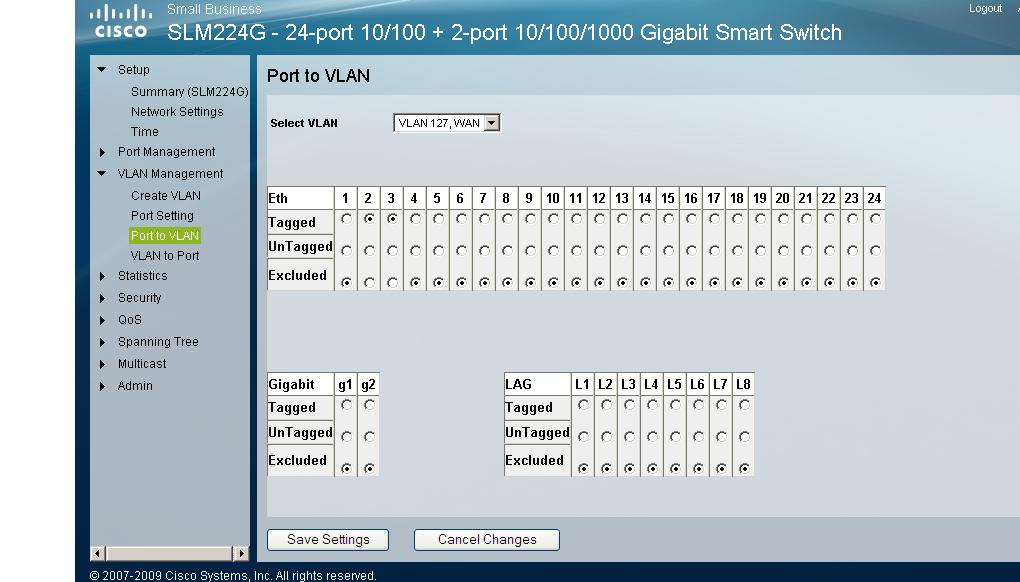 darkagent Posted October 8, 2010 Posted October 8, 2010 Порт 2 находиться в 127 влане Порт 3 настроен как транк но почему то порт 2 и порт 3 вы настроили одинаково.у вас на обоих портах трафик тегированый. если вы ко 2му порту цепляете компьютер - то на него стоит подавать нетегированный влан. Вставить ник Quote