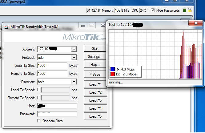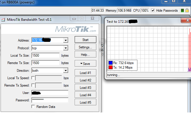 cheh Posted October 28, 2010 Posted October 28, 2010 Последнее время стал замечать что процессор RB600A R52H грузиться сильно т.е. от 1-1.5 мбит. трафика проц. грузиться на 10-15%. Он как бы не стоит на месте а скачет верх вниз. Еще проверял Bandwidht тестом, вот что выдает: От чего может быть это? Что в первую очередь проверить? (пигтейлы от mick.ru, антенны гиперлинк. секторные. короче никакого самопала) Вставить ник Quote
