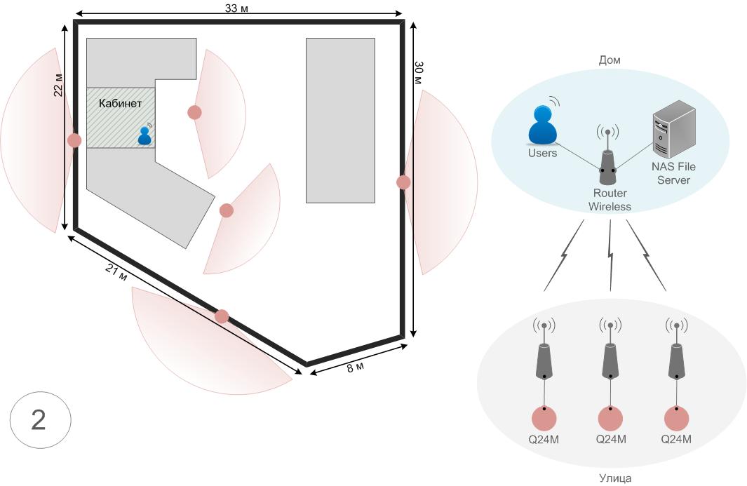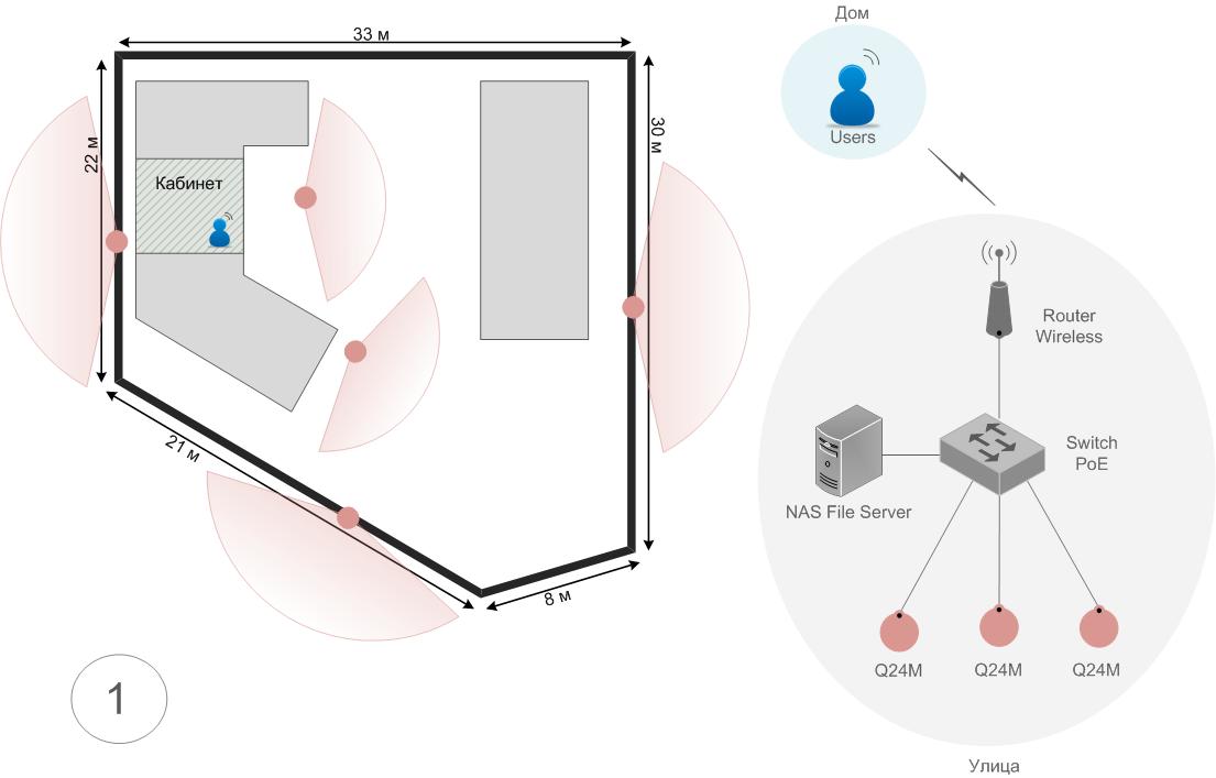 garmonik Posted October 29, 2010 Posted October 29, 2010 Всем привет! Есть объект, на котором надо организовать видеонаблюдение. Сложность заключается в том, что место, откуда будут, мониторить эту систему находится в 3-х этажном доме на втором этаже, в этот дом тянуть провода нельзя. Вот два варианта, которые мне пришли в голову как можно это сделать: Первый вариант мне нравится больше, единственный минус, имхо, что оборудование придется устанавливать на улице, но такое размещение оборудования соответствует заявленному желанию - ни каких проводов в дом, только пользователь внутри дома с Wi-Fi карточкой. Второй вариант выглядит более не рациональным, как-то жирно на каждую камеру по 1 точке доступа, но все также соответствует заявленному желанию. Да и в монтаже, имхо сложнее, придется устанавливать распределительный щиток в том месте, где установлена камера, чтобы запитать ТД. Мощность каждой камеры от 3.84 W - 6.49 W. На первую схему подобрал PoE Switch DGS-1210-10P, 8 портов, либо TL-SG3109 (в нагрузку с набором адаптеров PoE TL-POE200). Беспроводной маршрутизатор DIR-320 (правда не нашел внешней антенны на него), либо WRT54GL. NAS – система, видео регистратор от dlink - DNS-722-4 или сетевое хранилище Iomega StorCenter ix2 1 ТБ. На вторую схему маршрутизатор DIR-320, либо WRT54GL, на каждую камеру DWL2100AP. Покритикуйте и посоветуйте пожалуйста, что можно улучшить в данной схеме или в оборудовании. Вставить ник Quote