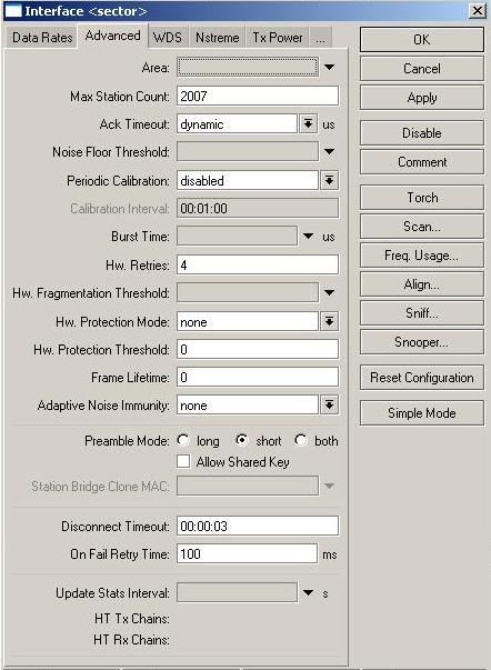 SSD Posted November 11, 2010 Posted November 11, 2010 Доброго всем времени суток. Имеется базовая точка в 8-10 км от города, которая раздает интернет местному населению. Построено все на RB433AH, есть 2 роутера образующих канал и один с антенной секторной и всенаправленной (по 12dbi), подключенные между собой по ethernet. Общий канал при тесте показал 40/30 Mb/s и проблем с пингом замечено не было. А вот с всенправленной антенной дела обстоят хуже. На данный момент на ней "висит" 13 абонентов из которых 10 mt RB411 и 3 dlink 2100. При трафике около 4-5 Mb появляются скачки пинга у абонентов от 1 до 200, при этом секторная антенна и общий канал работают отлично. Настройки прилагаются, data rates и tx power везде в дефолте ибо при изменении данных настроек ничего не менялось. Возможно ли решить проблему с пингом и каким способом? Сильно не критикуйте Убрать длинки, включить нстрим с поллингом. Добиться одинакового уровня сигналов у всех клиентов которые подключены к роутеру с омни антенной. Вставить ник Quote