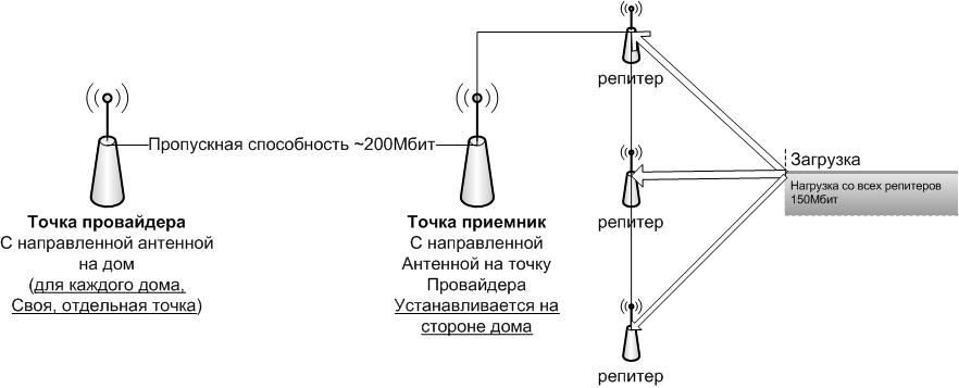 citruss87 Posted November 14, 2010 Posted November 14, 2010 (edited) Откажитесь от сервисов так как они будут очень сильно мешать.... В качестве билинга и авторизации посоветую easyhotspot она работает в куппе с LAMP, freeradius транспорт, chillispot контроллер доступа. В качестве магистрали предлагаю использовать Bullet M2 HP + ПАР 31s или ПАР-24 в зависимости от расстояния. Чтобы увеличить пропускную способность можно поставить по умному свитчу на каждом конце настроить на них LinkAggregation + подключить к ним несколько устройств с одной антенной через филбтры канадской компании http://www.dci.ca/index.php?Section=WiFi фильтры типов DCI-DPX-CH1-11-2x8P и DCI-TPX-CH1-6-11-3x12P не советую использовать длинные каскады репитеров так как в этом случае у вас скорость будет уменьшаться пропорционально количеству ваших репитеров т.е. не советую AP----Repeater----Repeater----Repeater----Repeater как у вас на схеме лучше немного потратиться на узконаправленные антенны ведь антенны это 50% успешного бизнеса Лучше всего использовать схему чтобы точка доступа была в центре а повторители только лишь расширяли зону покрытия....Успехов в ваших начинаниях . А ну да не стоит использовать никакие виды шифрования так как чилиспот все равно через себя не пустит до тех пор пока клиент не пройдет авторизацию.... Более подробно можно загуглить Edited November 14, 2010 by citruss87 Вставить ник Quote