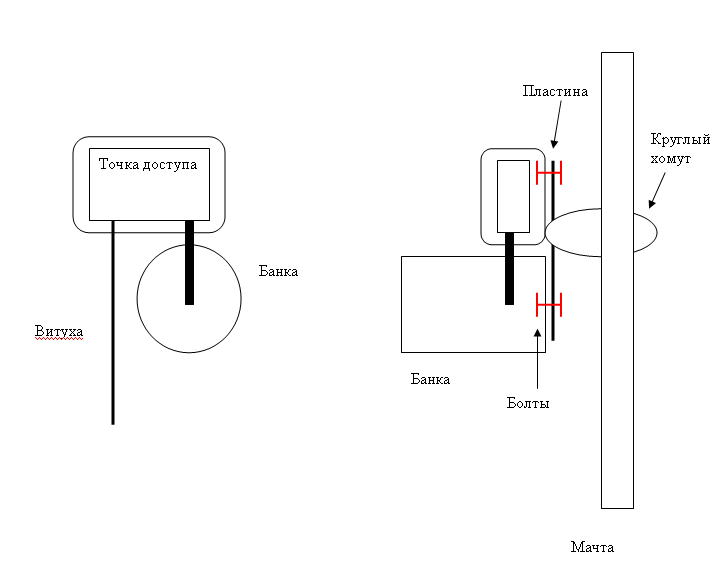 Saab95 Posted December 16, 2010 Posted December 16, 2010 Если уж вы хотите линк за дешево, то вам не нужны никакие антенны и кабеля, тем более потеря 4-5дб в кабеле с самодельной антенной сразу лишает ее всех преимуществ. В вашем случае нужно сделать так: 1.Рассчитать параметры баночных антенн под имеющиеся у вас банки. 2.Просверлить отверстие и вставить туда шатную антенну от точки доступа, зафиксировать ее надежно (клей, герметик, распорки). 3.Купить 2 пластиковых бокса для приготовления пищи в микроволновке таких размеров, чтобы туда поместилась точка доступа. 4.Просверлить в боксе отверстие под антенну и отверстие для витой пары, а так же маленькое для слива конденсата. Точка будет размещена вверх ногами, антенной вниз. Фиксируете ее в пластиковом боксе, снизу одеваете банку, сзади к банке прикручиваете прямоугольную пластинку из любого материала саморезами, так же к этой пластинке прикручиваете пластиковый бокс. В этой пластине сверлите 2 отверстия такого размера, чтобы пролез ленточный круглый хомутик, которых полно в магазинах автозапчастей, для крепежа всей конструкции на мачту. 5.Питание к ней пускаете по свободным парам витухи. 6.Засовываете все в большой крепкий пакетик, устойчивый к ультрафиолету и вешаете на крыше прямо на мачту. Чтобы точка не висла и не глючила - разбираете ее и трогаете пальцем все микросхемы на плате - если они греются то клеите на них радиаторы с термопастой. Пластиковый бокс снаружи промазываете силиконовым герметиком. Вот на картинке будет более наглядно. На таких банках в свое время делали линки на 2 километра с прокачкой в несколько мегабит, на 350 метров можно будет прокачать все 20. Так же посмотрите вот эти ссылки про буллет и наностанцию. http://asp24.ru/ubiquiti/ubiquiti-nanostation-m2-loco/ http://asp24.ru/ubiquiti/ubiquiti-bullet2/ Буллет стоит 2160, но к ним нужно делать антенны. Локо 2M стоит 3400, к нему ничего не надо и он прокачает вам 60 мегабит информации в секунду. В сторону простого локо 2 не смотрите, цена почти такая же, а скорость в 3 раза меньше. Вставить ник Quote