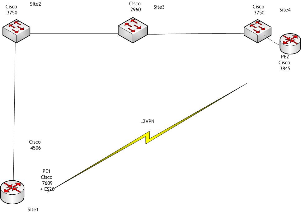 f.dorokhov Posted January 26, 2011 Posted January 26, 2011 Доброго дня господа! Образуется кольцо со всеми вытекающими при настройке PVST, В сети находится все оборудование Cisco направление между сайтоми 2 и 3 переодически падает, благодаря пьяным эксковаторщикам. Решено зарезервировать 3 влана с использованием PVST, Сайт-1 7609 был выбран рутом spanning-tree mode pvst spanning-tree extend system-id no spanning-tree vlan 1-533,535-4092 spanning-tree vlan 534 priority 4096 как видно соединение с сайтом-2 напрямую с сайтом-4 Л2ВПН сайт-3 2960, где объек подлежащий резервированию, на 1 порту подключен клиент spanning-tree mode pvst spanning-tree extend system-id spanning-tree vlan 534 priority 20480 Сайт-4 (R3845 и Cisco3750-каналообразующая) на R3845 настроен Л2ВПН в сторону 7609, и на 3750, резерв в сторону Сайта-2 собственно как только связываю кольцо из вланов, то образуется тупо петля! sh spanning-tree показывает следующее сайт-1. 7609 s spa VLAN0534 Spanning tree enabled protocol ieee Root ID Priority 4630 Address 0027.0d47.fb00 This bridge is the root Hello Time 2 sec Max Age 20 sec Forward Delay 15 sec Bridge ID Priority 4630 (priority 4096 sys-id-ext 534) Address 0027.0d47.fb00 Hello Time 2 sec Max Age 20 sec Forward Delay 15 sec Aging Time 300 Interface Role Sts Cost Prio.Nbr Type ------------------- ---- --- --------- -------- -------------------------------- Gi1/17 Desg FWD 4 128.17 P2p сайт-2. sh spanning-tree VLAN0534 Spanning tree enabled protocol ieee Root ID Priority 4630 Address 0027.0d47.fb00 Cost 8 Port 1 (GigabitEthernet1/0/1) Hello Time 2 sec Max Age 20 sec Forward Delay 15 sec Bridge ID Priority 33302 (priority 32768 sys-id-ext 534) Address 0026.995d.f200 Hello Time 2 sec Max Age 20 sec Forward Delay 15 sec Aging Time 300 sec Interface Role Sts Cost Prio.Nbr Type ------------------- ---- --- --------- -------- -------------------------------- Gi1/0/1 Root FWD 4 128.1 P2p Gi1/0/2 Desg FWD 4 128.2 P2p Gi1/0/3 Desg FWD 4 128.3 P2p Gi1/0/6 Desg FWD 4 128.6 P2p Gi1/0/8 Desg FWD 4 128.8 P2p Gi1/0/10 Desg FWD 4 128.10 P2p Gi1/0/12 Desg FWD 4 128.12 P2p сайт-3 sh spanning-tree VLAN0534 Spanning tree enabled protocol ieee Root ID Priority 4630 Address 0027.0d47.fb00 Cost 12 Port 21 (GigabitEthernet0/21) Hello Time 2 sec Max Age 20 sec Forward Delay 15 sec Bridge ID Priority 21014 (priority 20480 sys-id-ext 534) Address 0025.83ba.2100 Hello Time 2 sec Max Age 20 sec Forward Delay 15 sec Aging Time 300 Interface Role Sts Cost Prio.Nbr Type ---------------- ---- --- --------- -------- -------------------------------- Gi0/1 Desg FWD 100 128.1 Shr Gi0/21 Root FWD 4 128.21 P2p Gi0/24 Desg FWD 4 128.24 P2p сайт-4 sh spanning-tre VLAN0534 Spanning tree enabled protocol ieee Root ID Priority 4630 Address 0027.0d47.fb00 Cost 16 Port 12 (GigabitEthernet1/0/12) Hello Time 2 sec Max Age 20 sec Forward Delay 15 sec Bridge ID Priority 33302 (priority 32768 sys-id-ext 534) Address 0026.995d.ff00 Hello Time 2 sec Max Age 20 sec Forward Delay 15 sec Aging Time 300 Interface Role Sts Cost Prio.Nbr Type ------------------- ---- --- --------- -------- -------------------------------- Gi1/0/2 Desg FWD 4 128.2 P2p Gi1/0/12 Root FWD 4 128.12 P2p в общем образуется кольцо. PVST протокол самой Cisco, его использовал - работало! Где-то подводный камень, возможно нужно что-то донастроить на 7609 в interface vlan'e или на l2 vfi???????? Вставить ник Quote