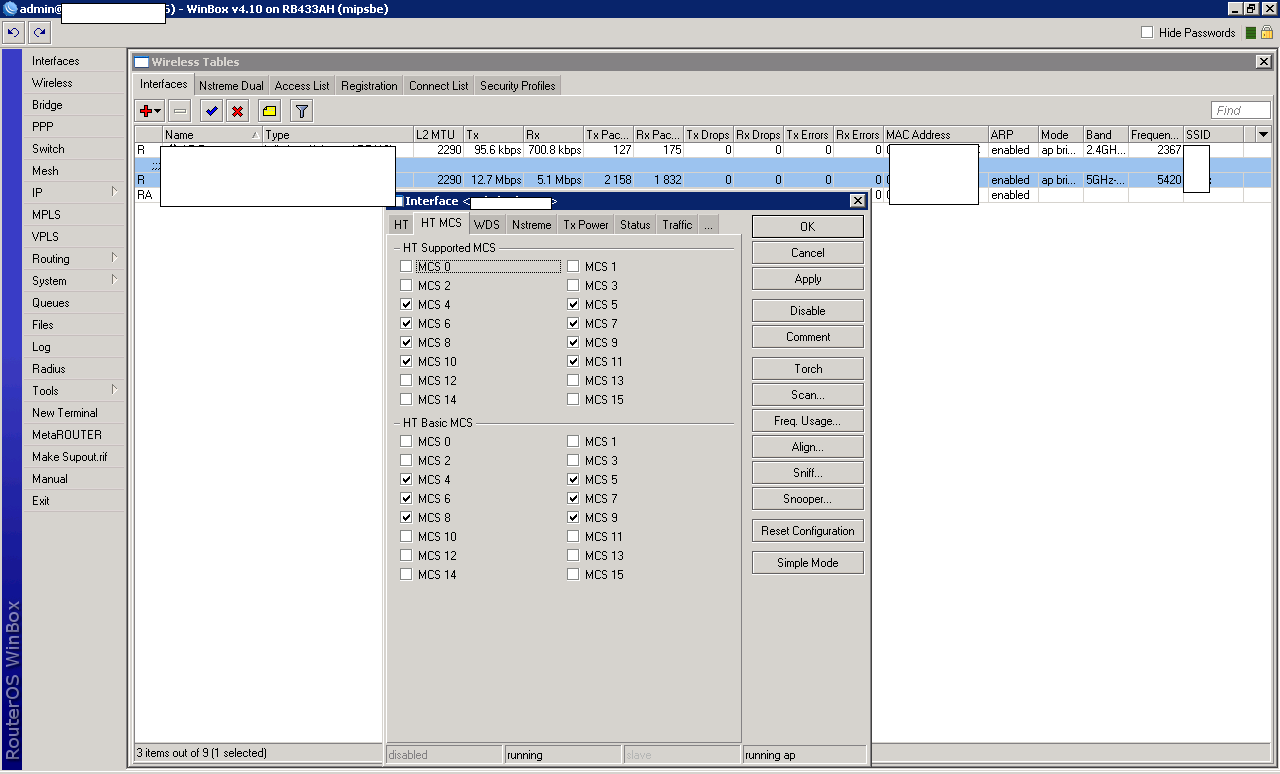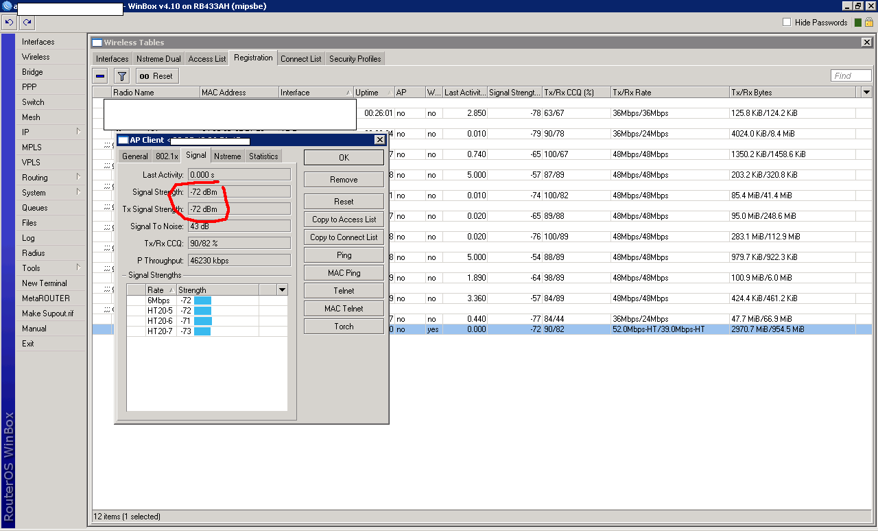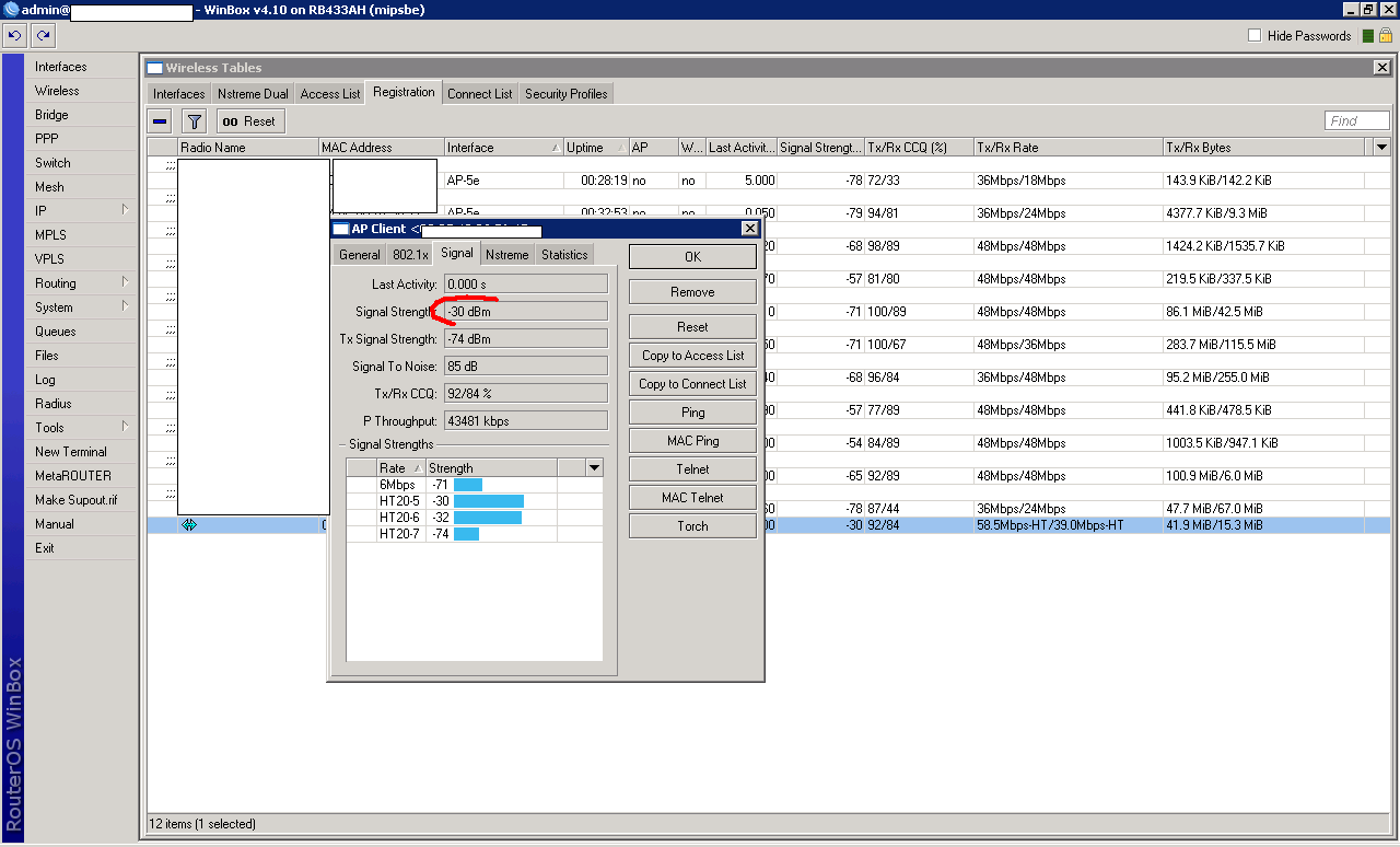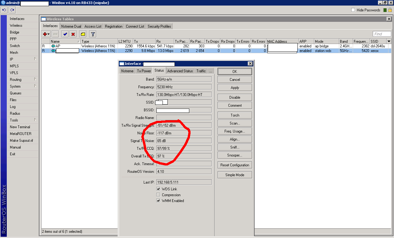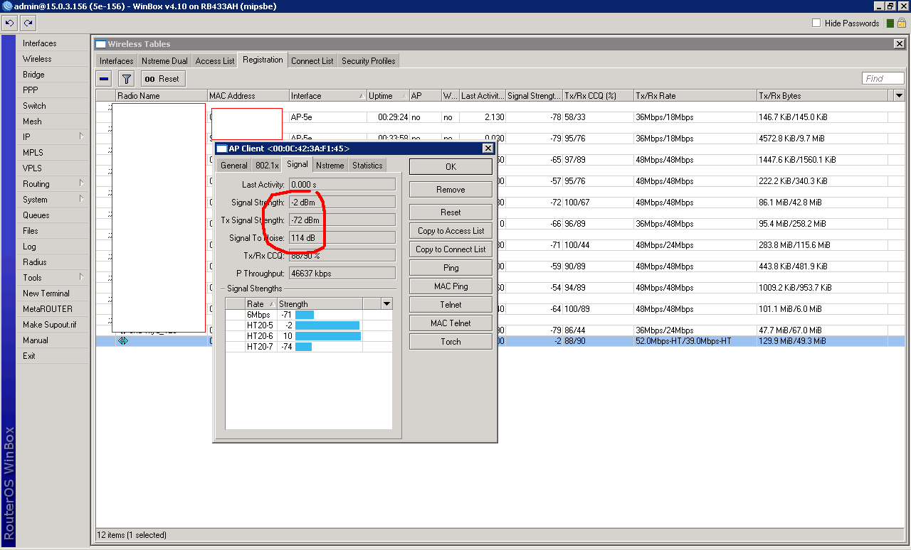 fastvd Posted February 5, 2011 Posted February 5, 2011 привет.стоит уже больше 2 лет канал на одно село, сначала там были асп-шки +МТ, потом перекинули наа 5 ггц А режим, и где-то уже как год когда не хватало поставили N режим, всё себе работало нормально, но вчера как что-то обрушилось на МТ: сигналы, сскю, снр прыгает как ненормальный-я такое за 3 года с МТ не видел! исходные данные: - расстояние 10 км - антенны 5 ггц, китайские где-то на 21-23 дби -с одной стороны 433АШ + r52n -с другой стороны 433 + r52n - питание и всё остальное норм -частота 5 ГГЦ, диапазон антенок от 5200 до 5450 ггц -изначальные сигналы в районе -70 -изначальная завязка по скоростям на 20 мггц полосе была 58 на 58 мбит -скоростя зажаты (на скрине) -нагрузка от 15 до 35 мбит -сквозняк на WDS'е -на другой стороне около 130 абонов -все мультикасты обрубаны -в логах ничего, тупо констатирует что обрыв вчера вечером канал тупо деградирывал: сскб на 26%, сигналы начали прыгать, канальные скоростя прыгали точно также и т.д. интересно от чего такое может быть, и обратите внимание на скринах на сигнал snr... сегодня немного успокоился линк то всё прыгает, обрывается время от времени Вставить ник Quote